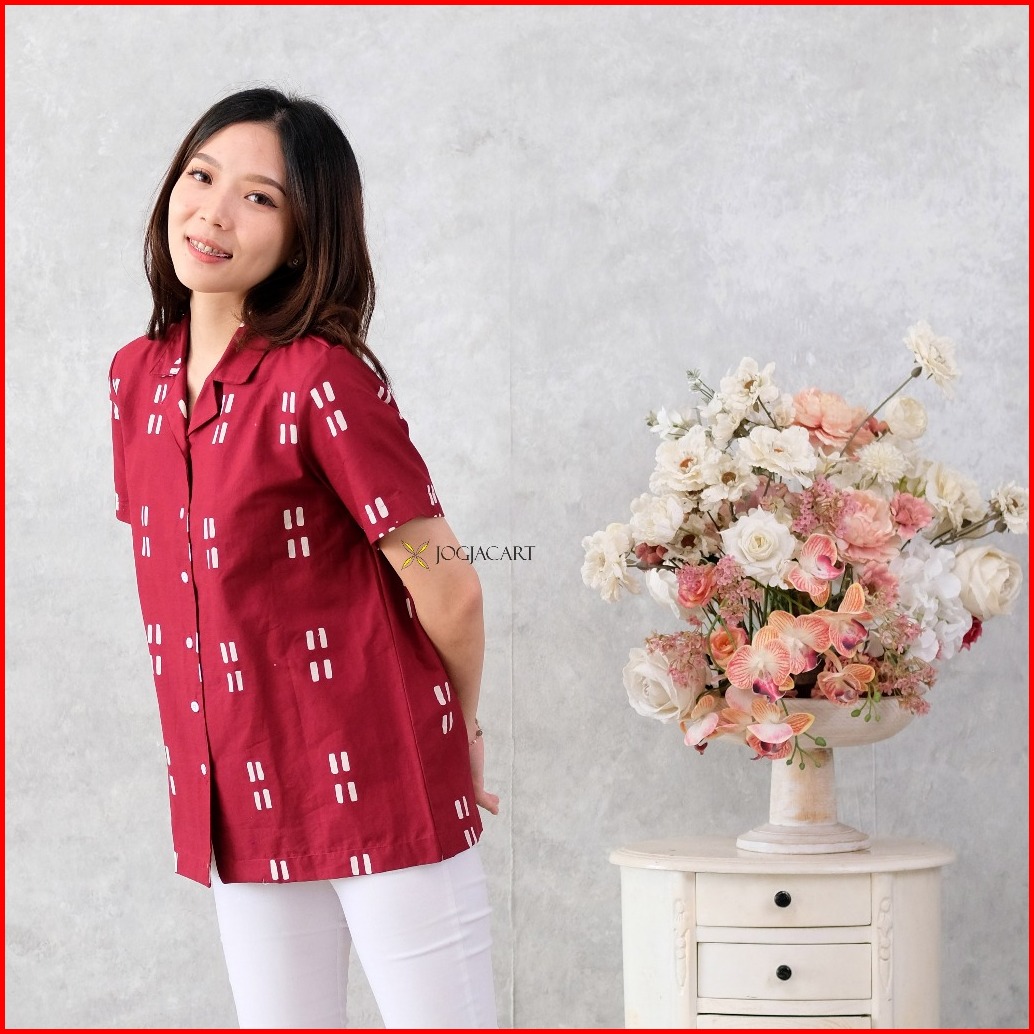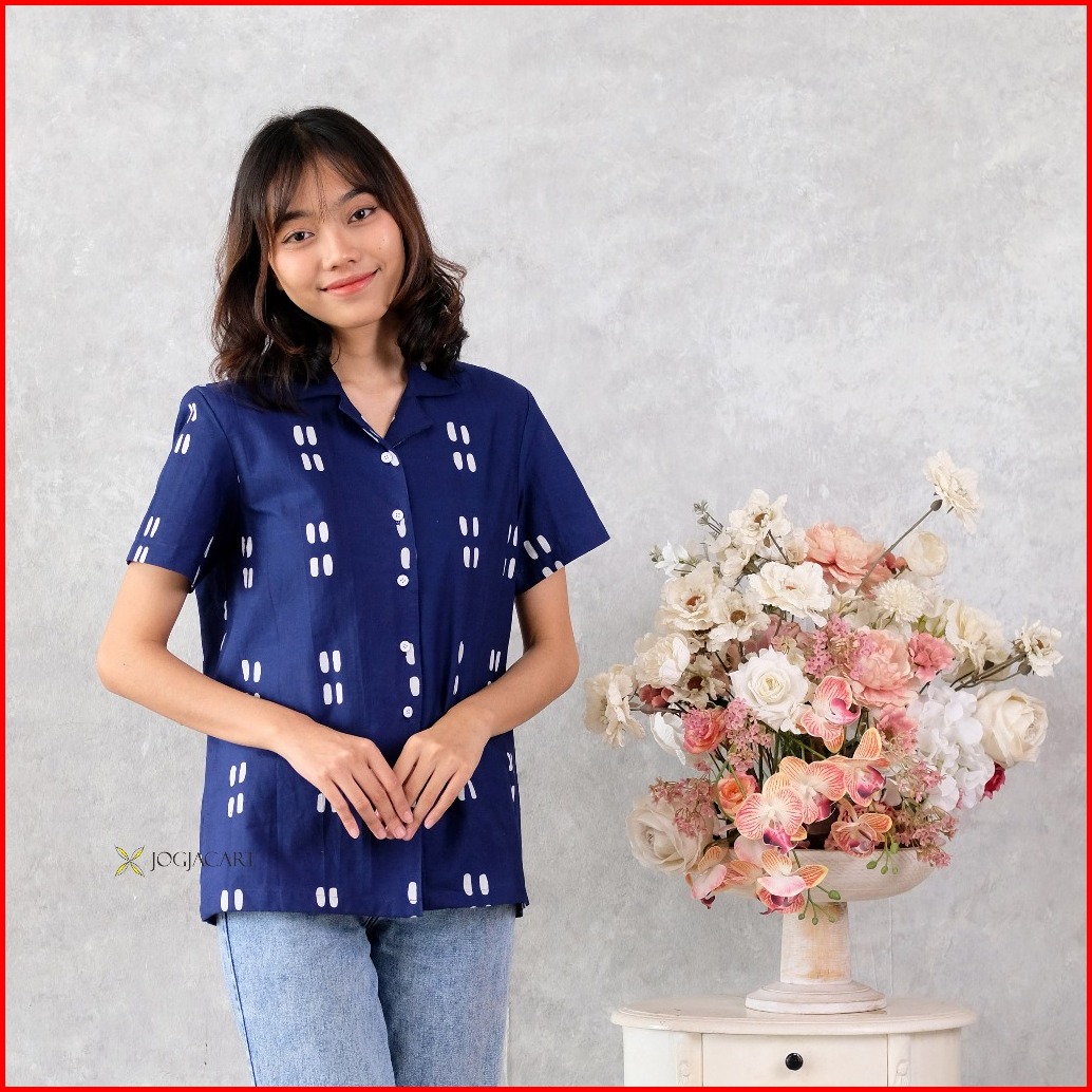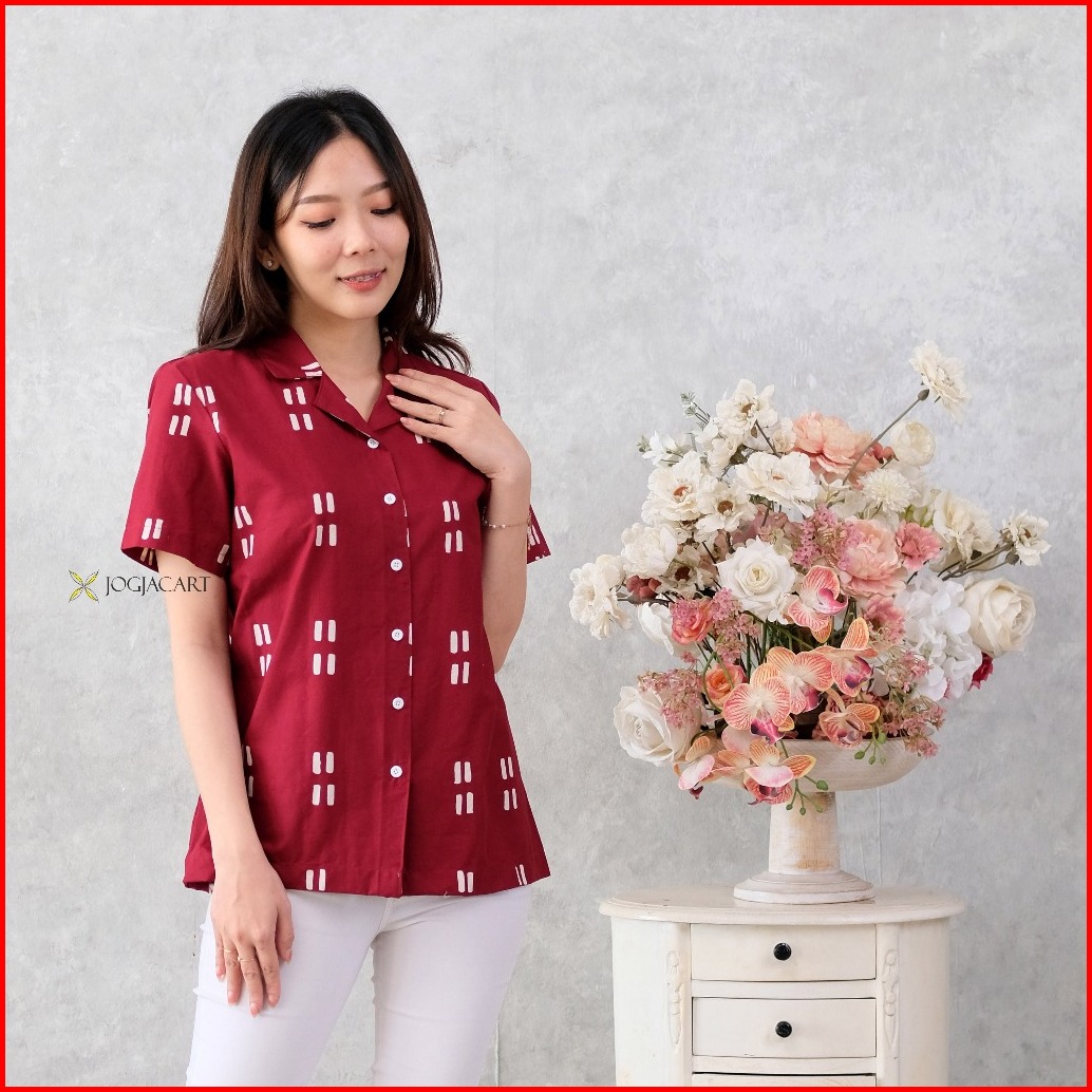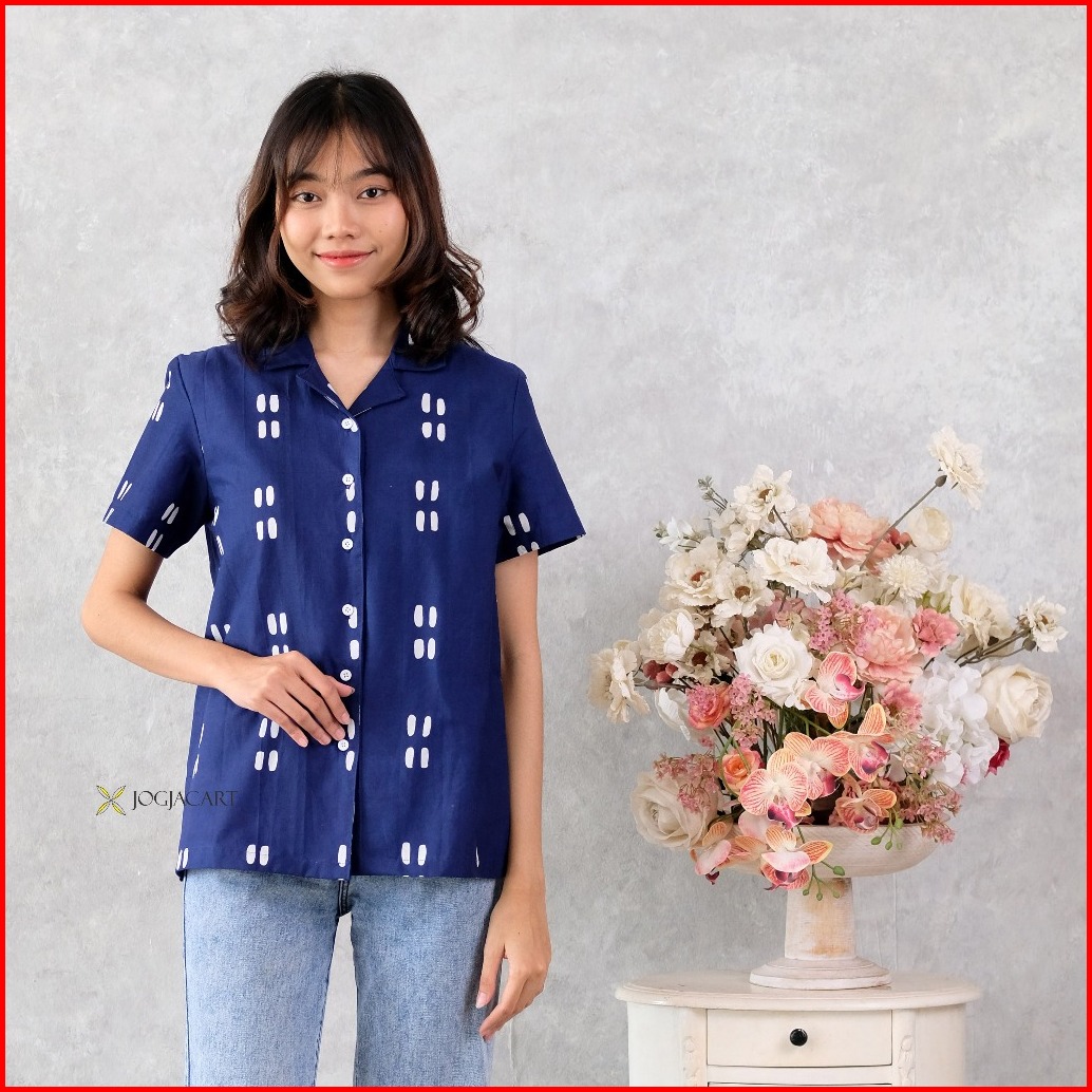 Jogjacart Batik - Sasha Blus Atasan Batik Cap Kerja Wanita Modern Jogja Katun Lengan Pendek Terbaru