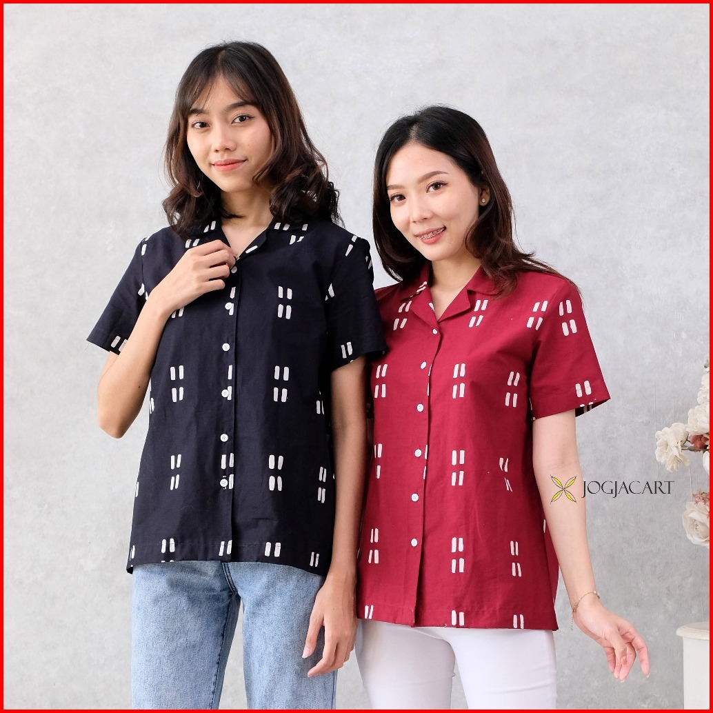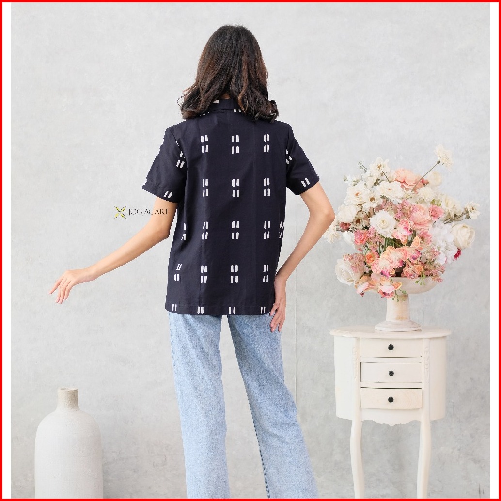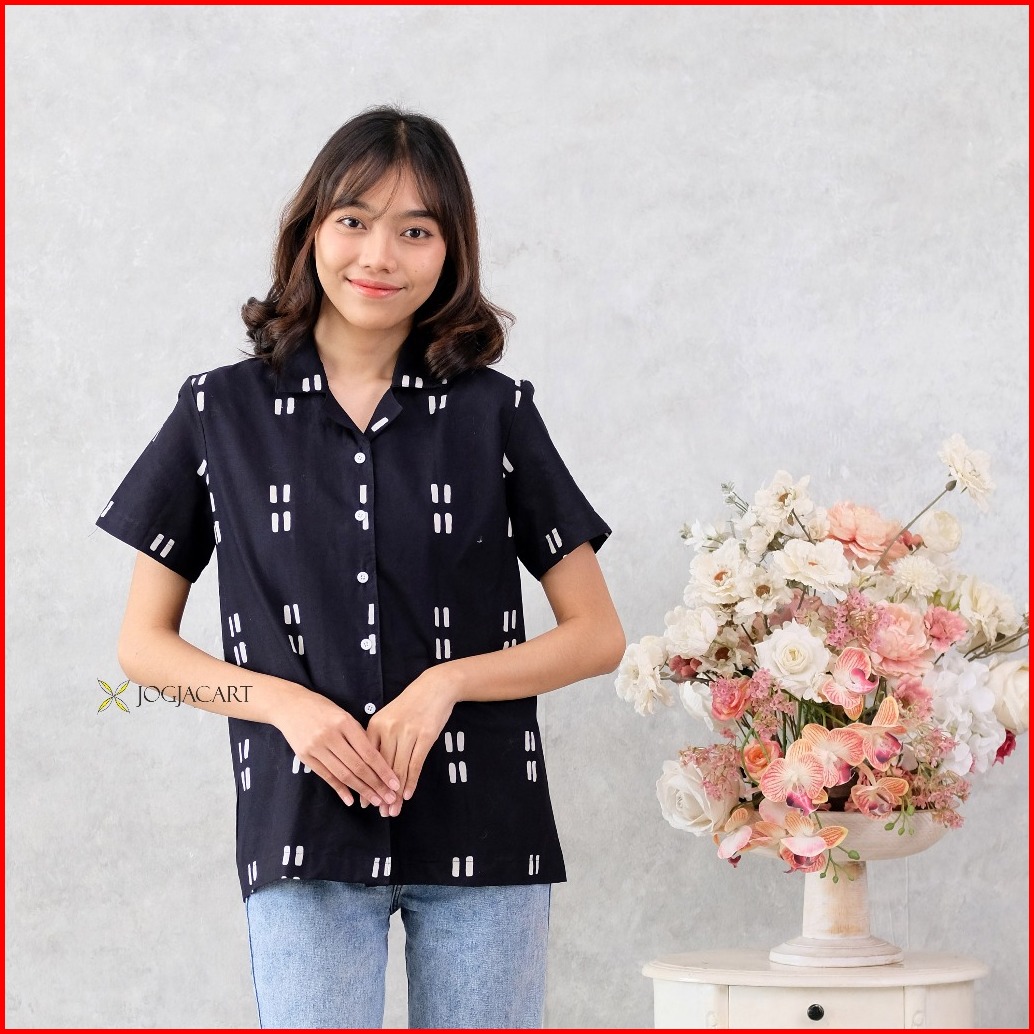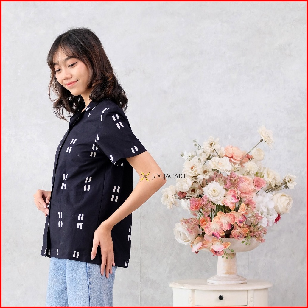 Jogjacart Batik - Sasha Blus Atasan Batik Cap Kerja Wanita Modern Jogja Katun Lengan Pendek Terbaru