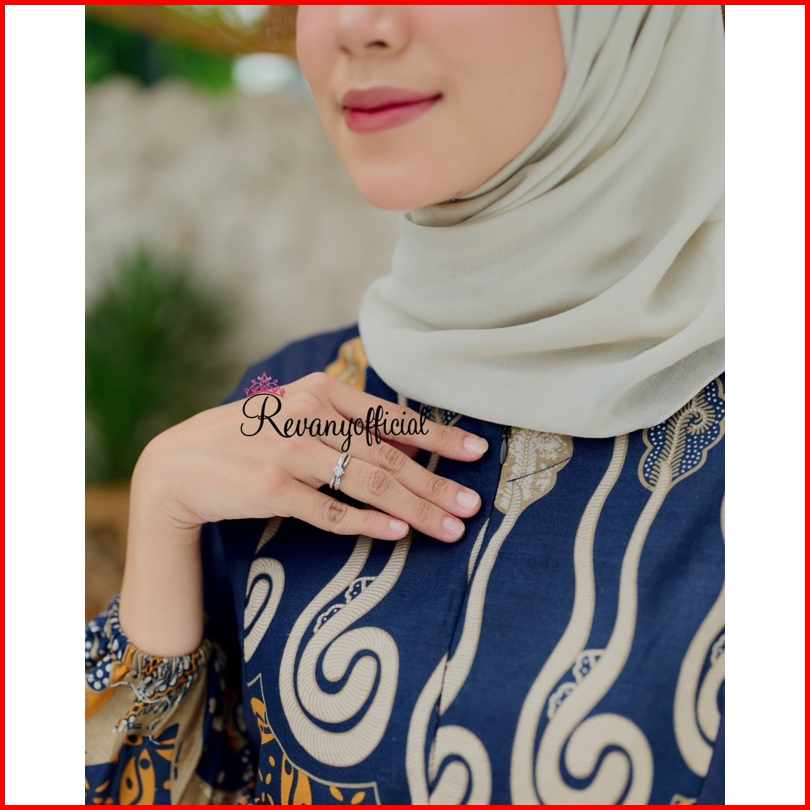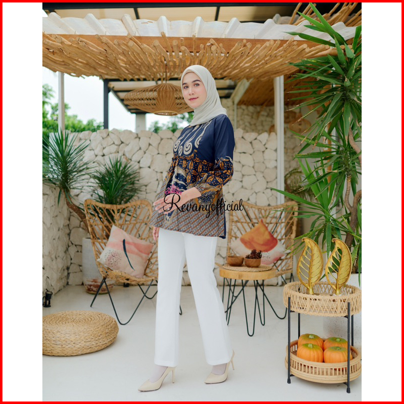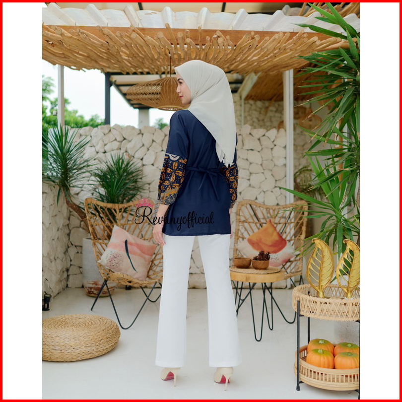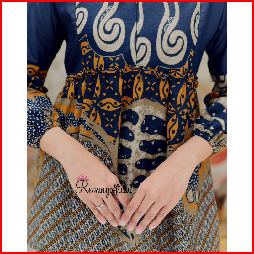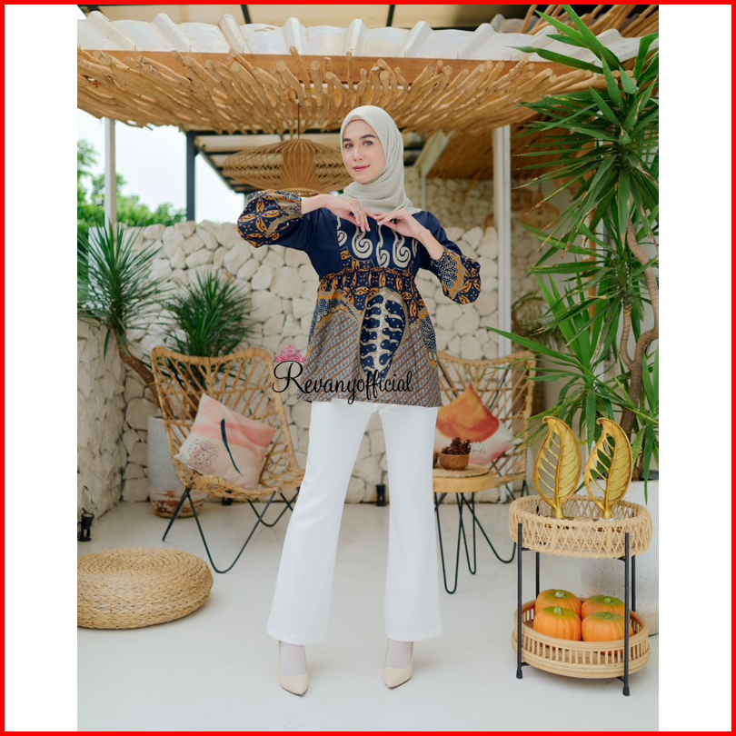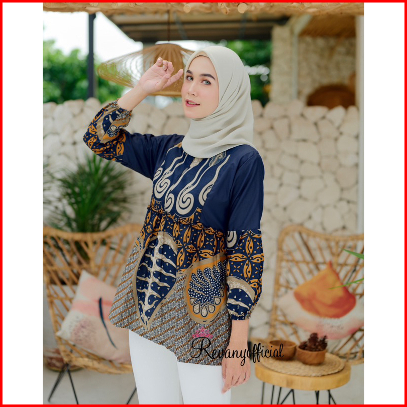 Revany Id - Blouse Melodi Navy Series Atasan Batik Kerja Wanita Modern