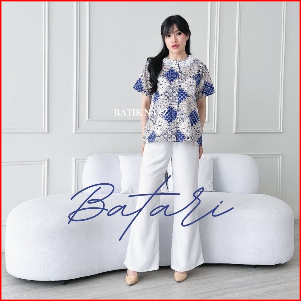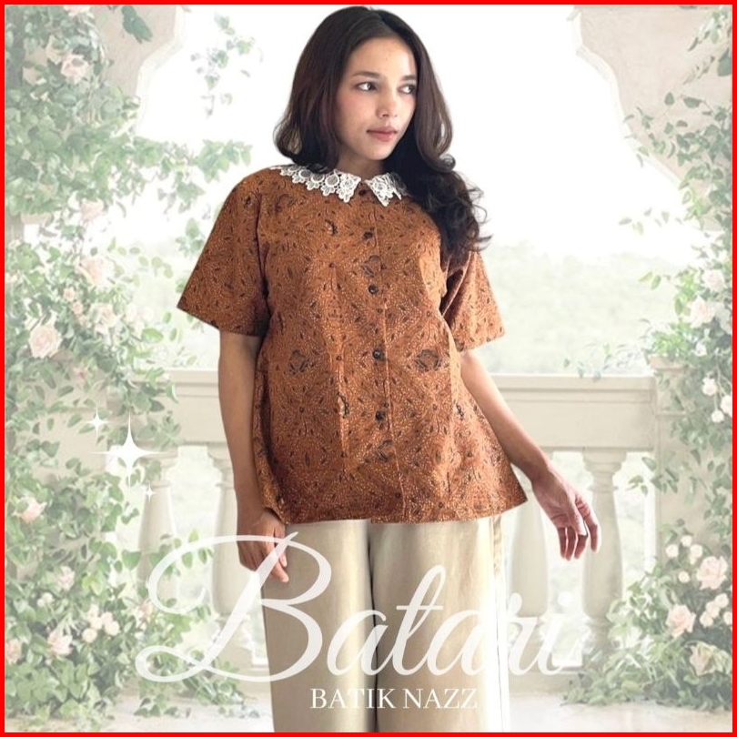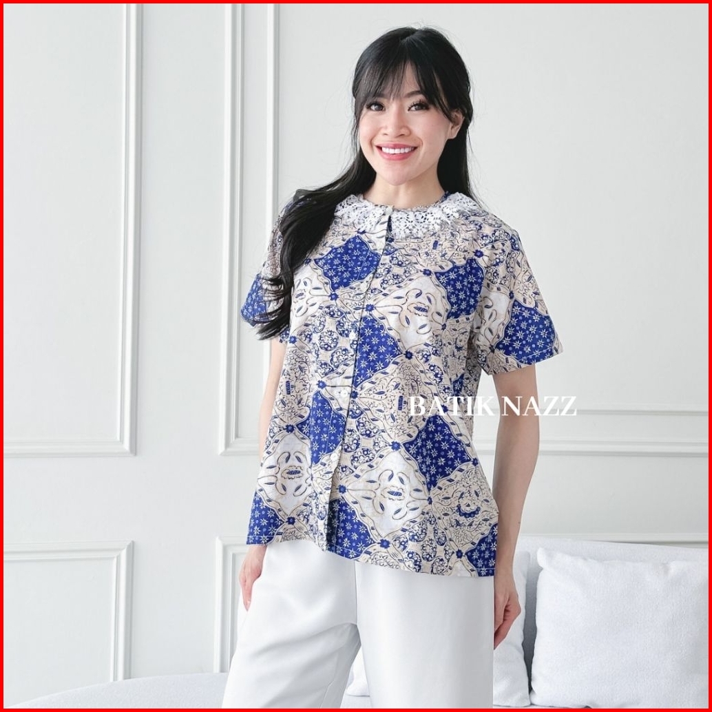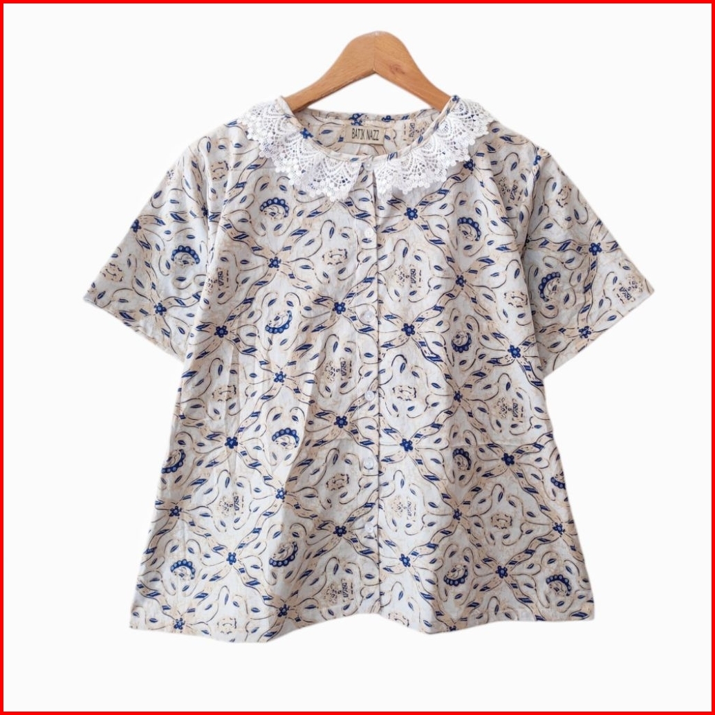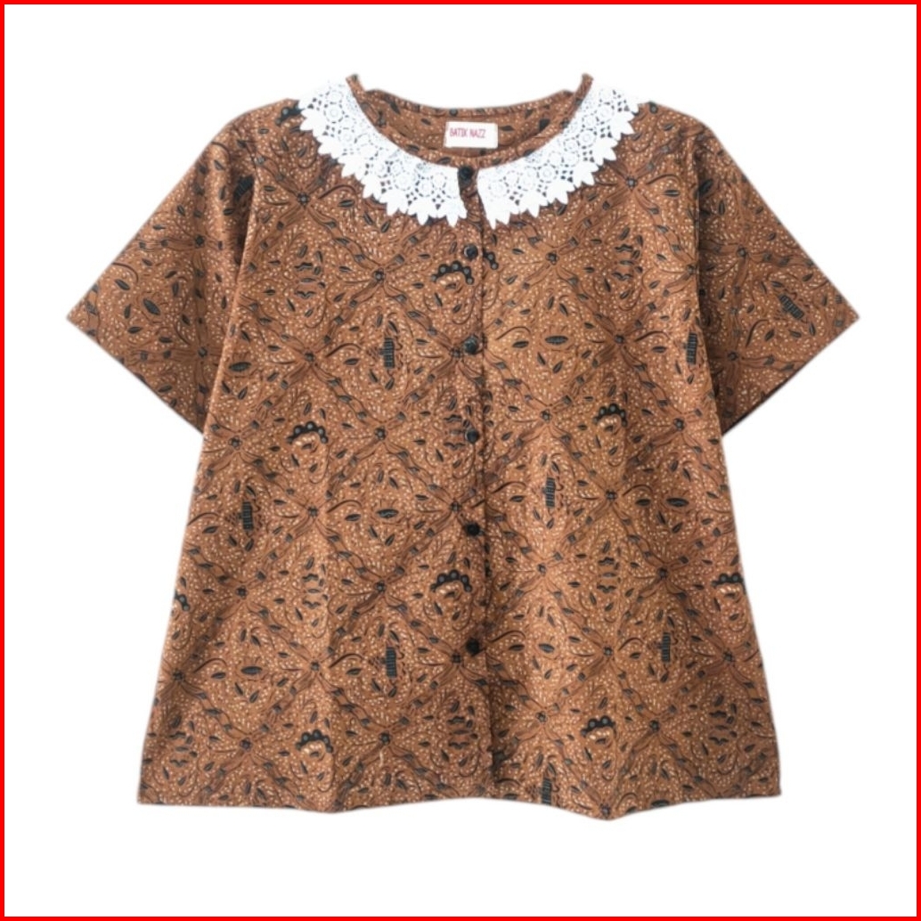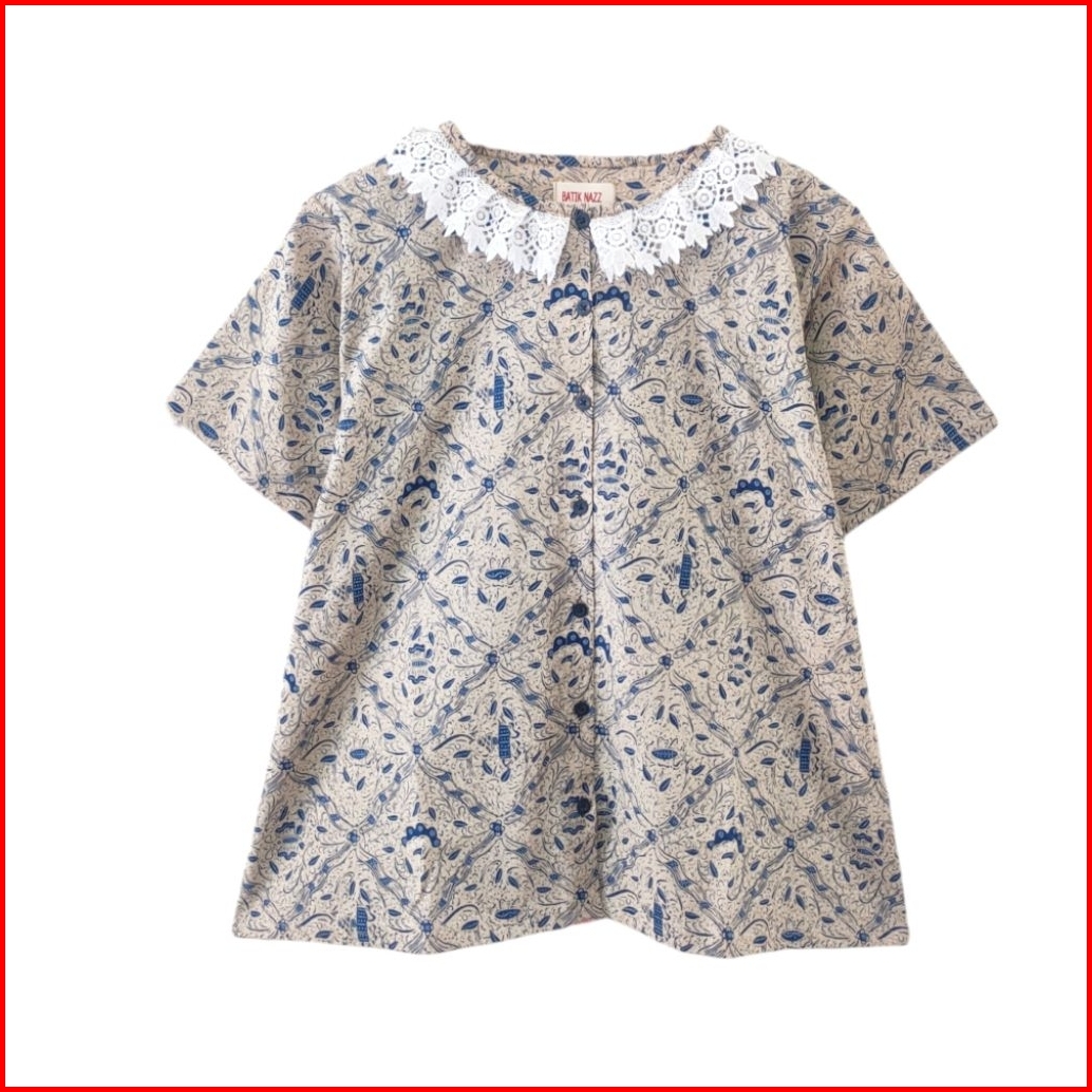Batik Nazz Blouse Batik Wanita Lawasan Unik Kerah Renda Lace Collar - Batari Blouse