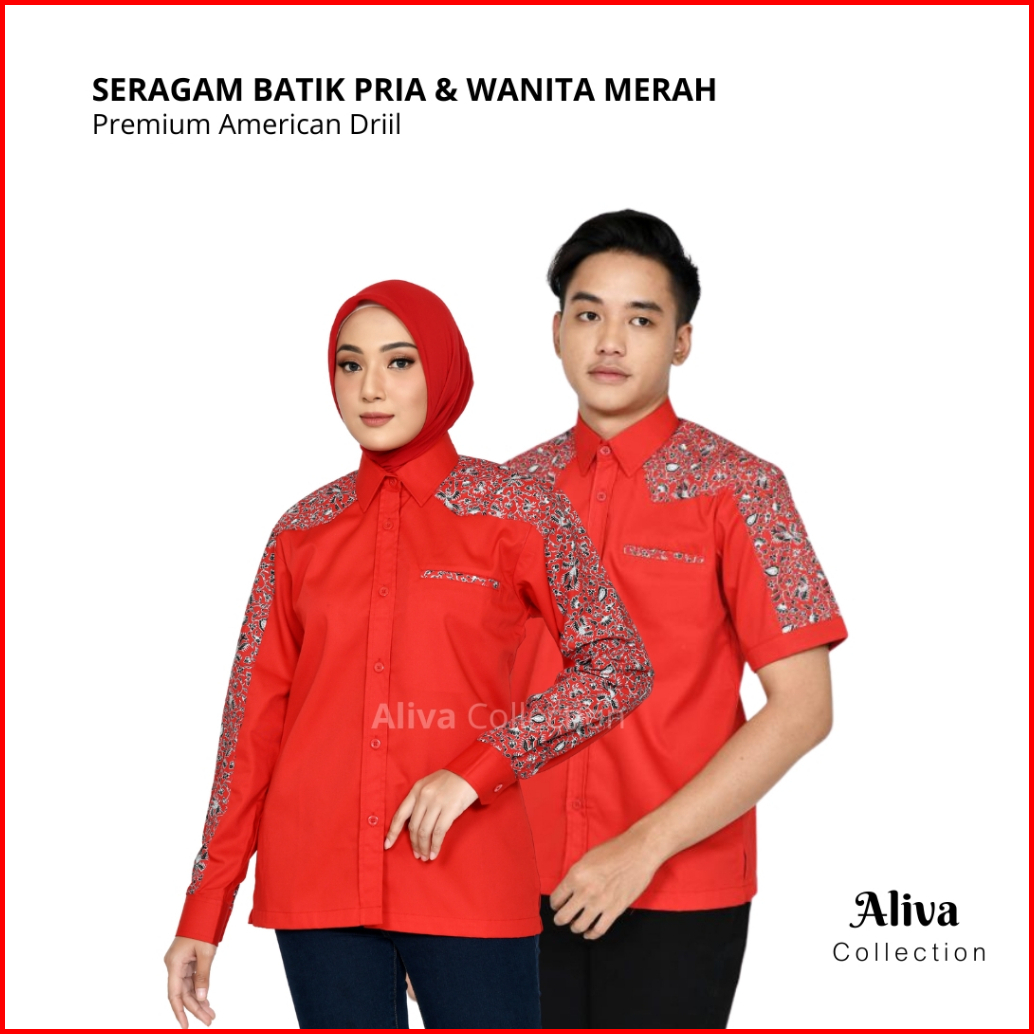 Aliva Baju Batik Merah Pria Wanita Batik Couple