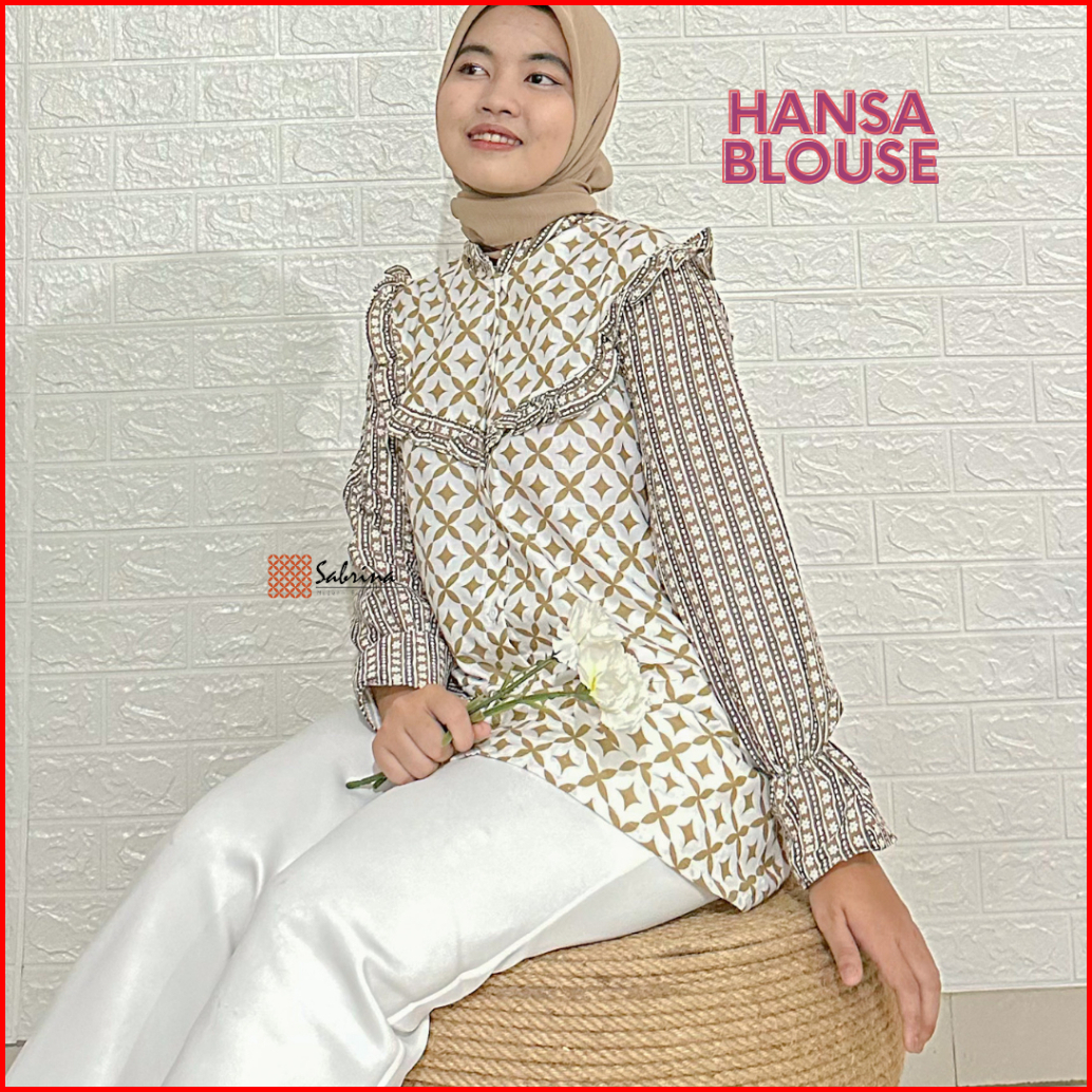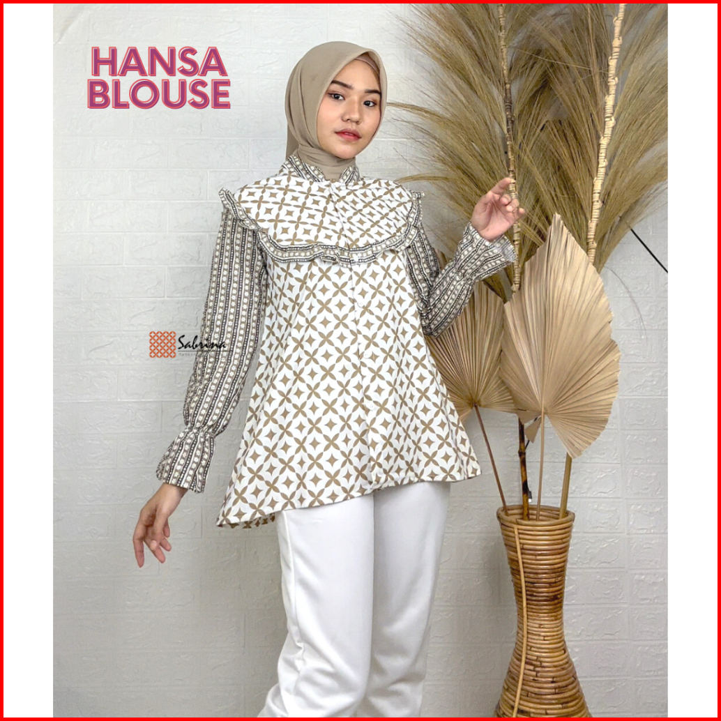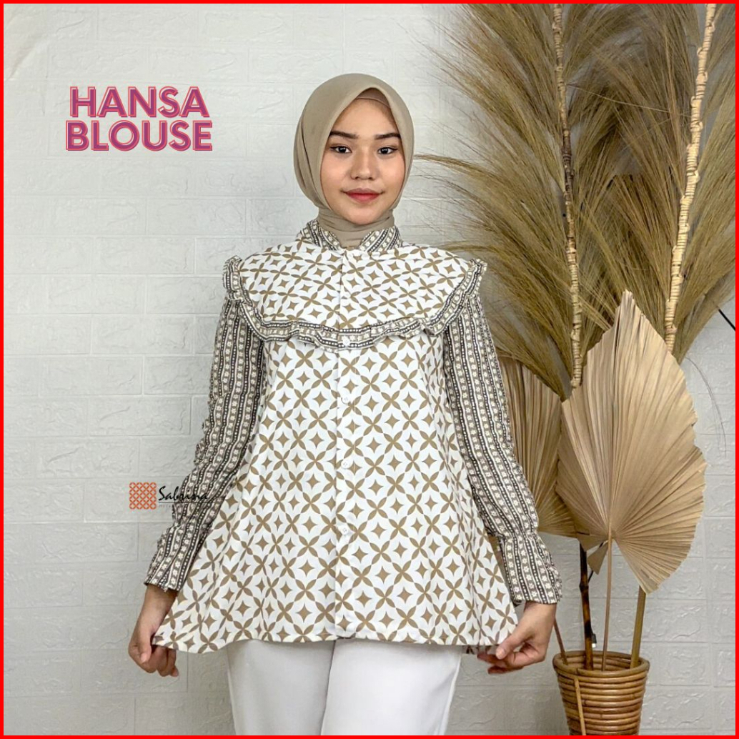 Hansa Blouse Atasan Batik Kerja Kantor Wanita Modern Modis Katun Kekinian Pastel