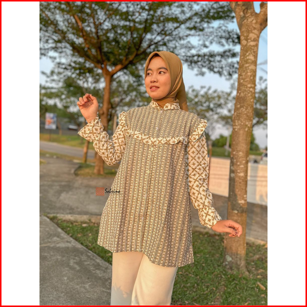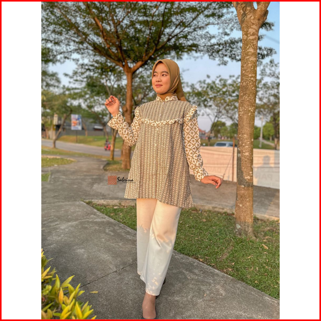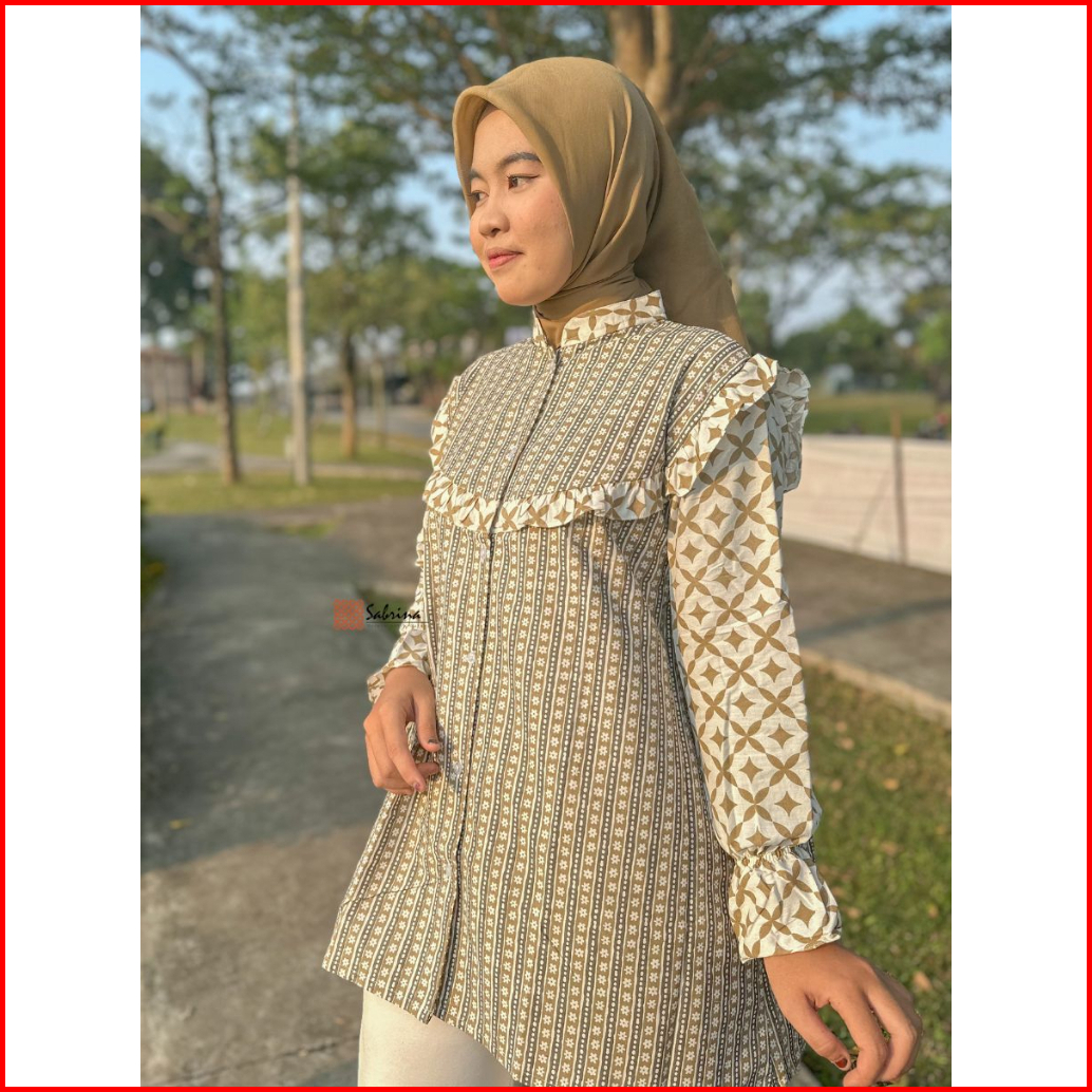 Hansa Blouse Atasan Batik Kerja Kantor Wanita Modern Modis Katun Kekinian Pastel