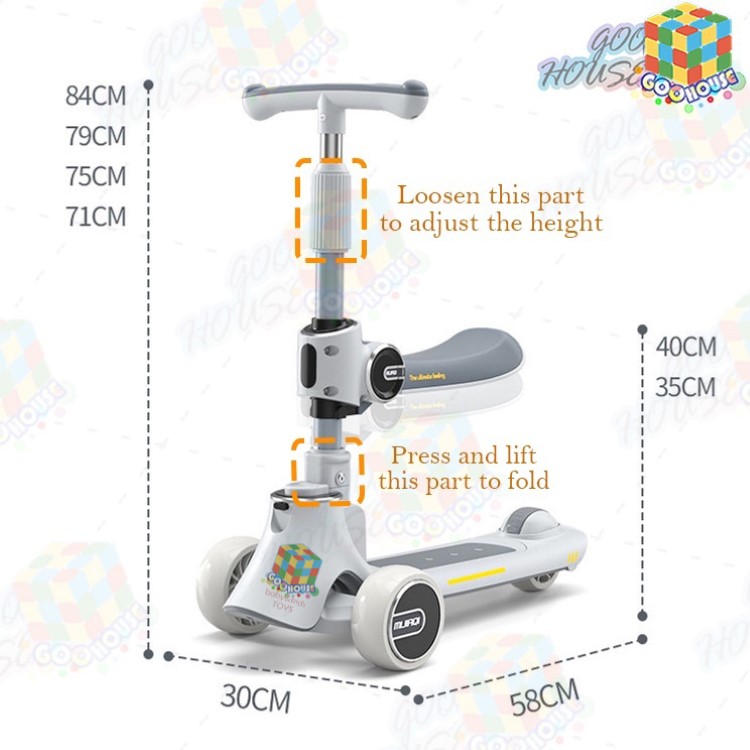 Skuter Anak 3 in 1 skuter anak perempuan skuter lipat Scooter Anak Musik skuter anak roda 3 Kids Scooter