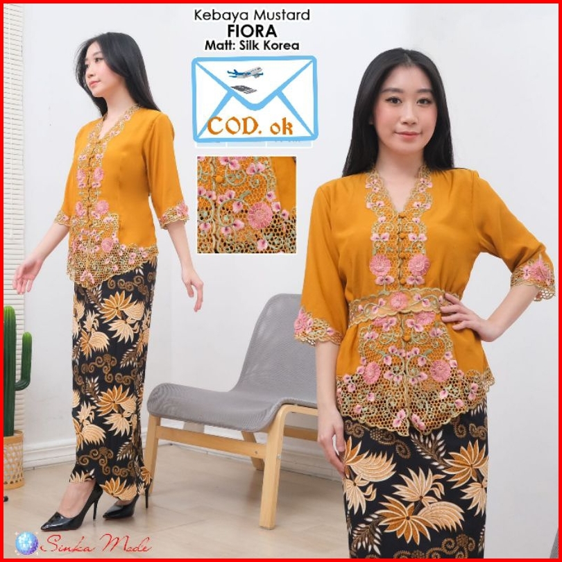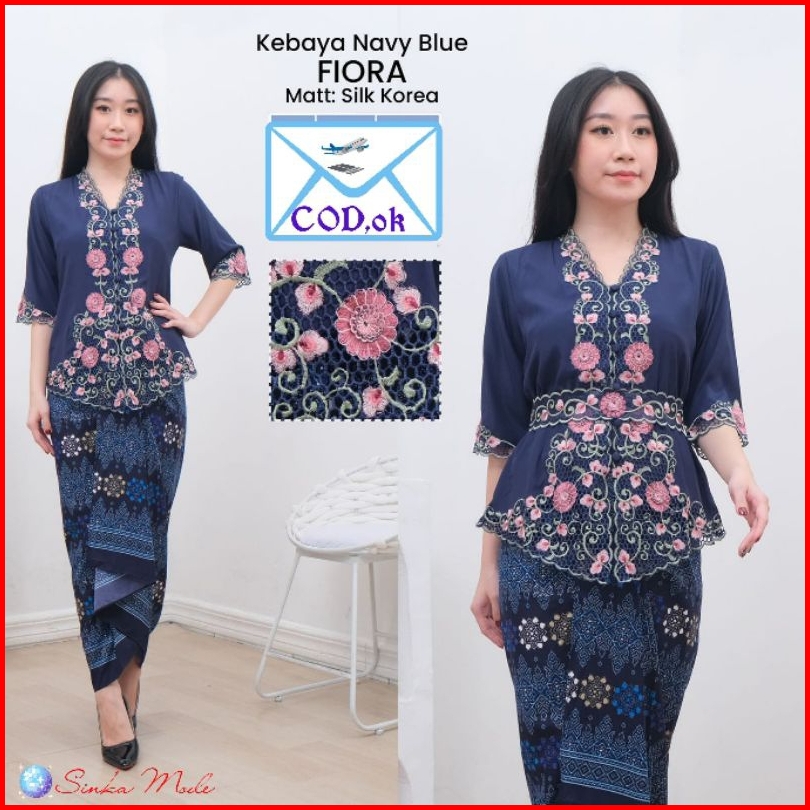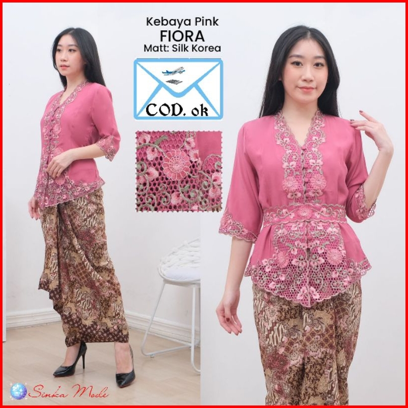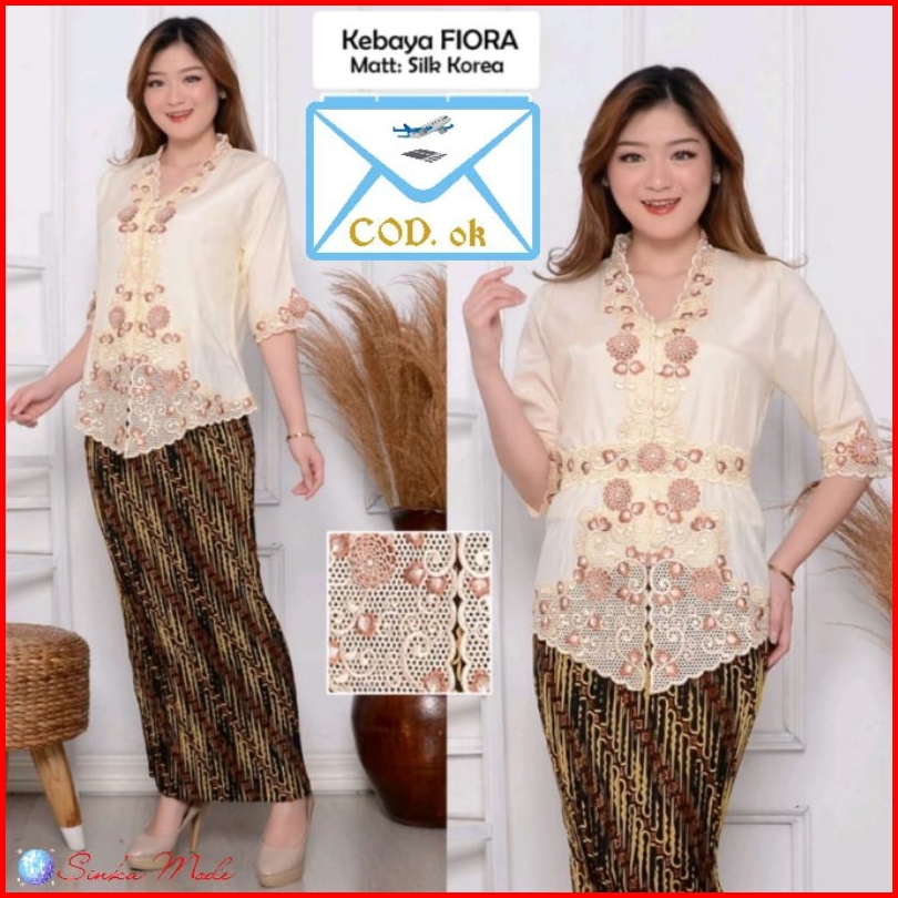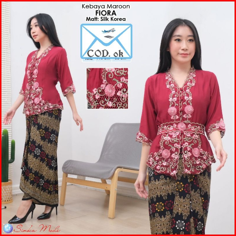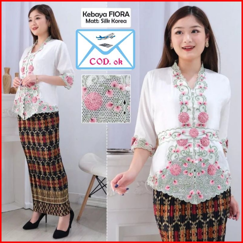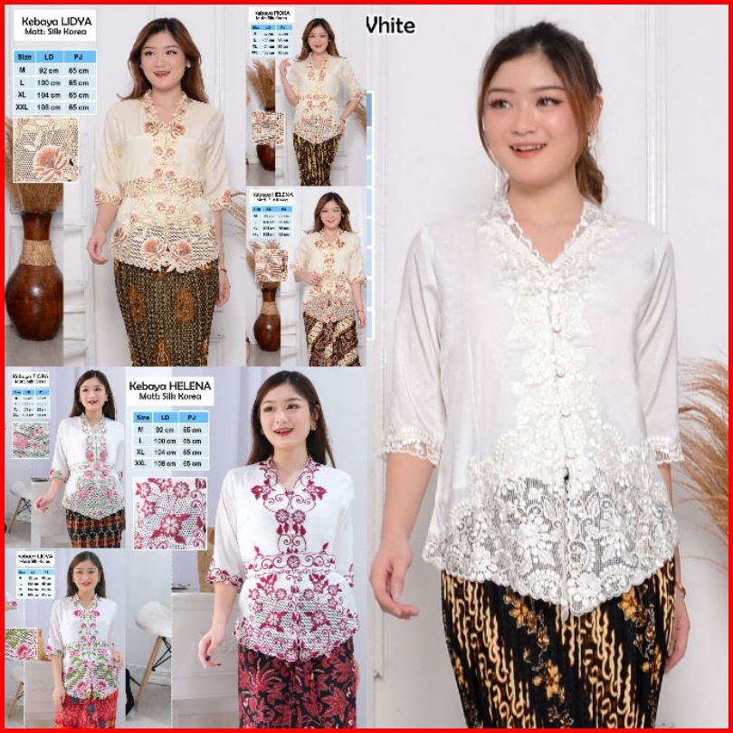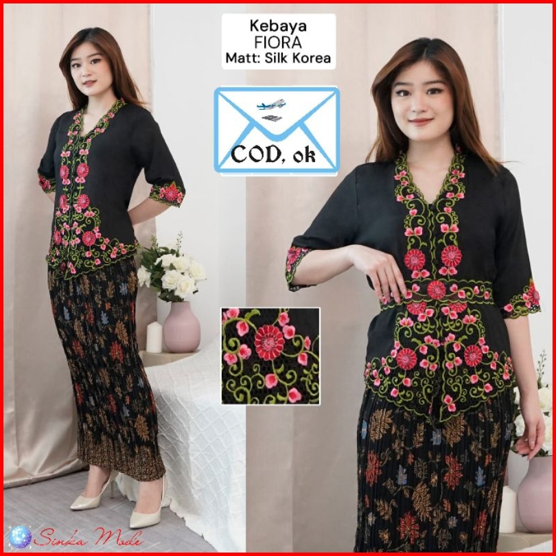 Atasan Kebaya Encim Modern Katun Silky Import Kombinasi Brukat Bordir Lengan 3 4 Senada Wanita