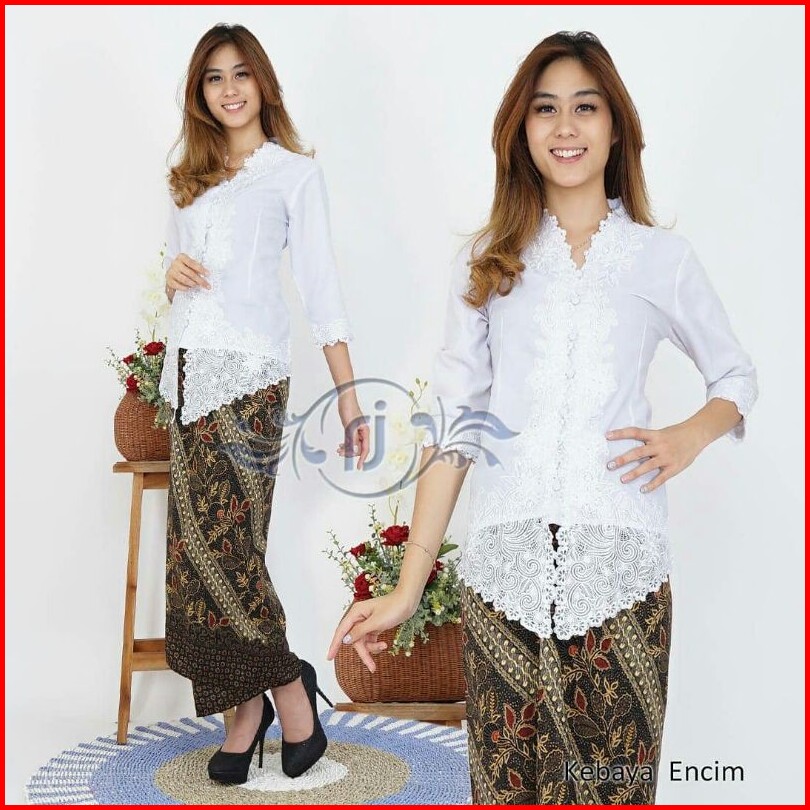 Atasan Kebaya Encim Putih Senada Tangan 3 4