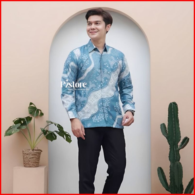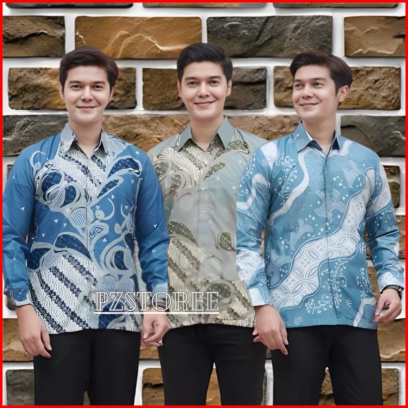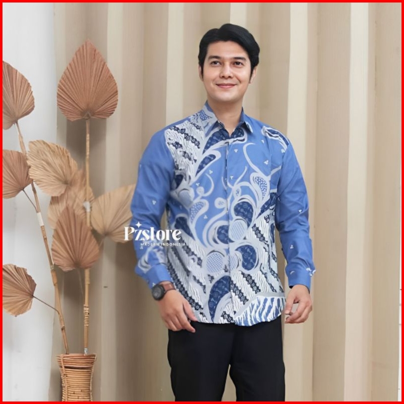 Batik Pria Lengan Panjang Pz Store Hrb026 Motif Keratonan Kode 002 Size M L Xl Xxl