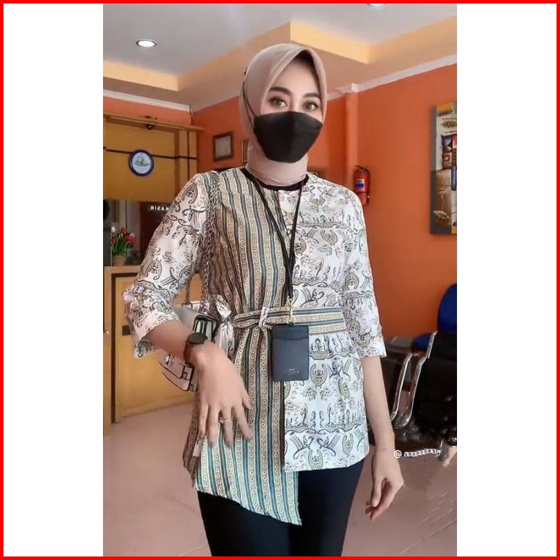 Batik Wanita Asj Sa Hrb026 Kenongo Kemeja Tosca Pendek Batik Fashion Baju Wanita - Seragam Batik Priawanita