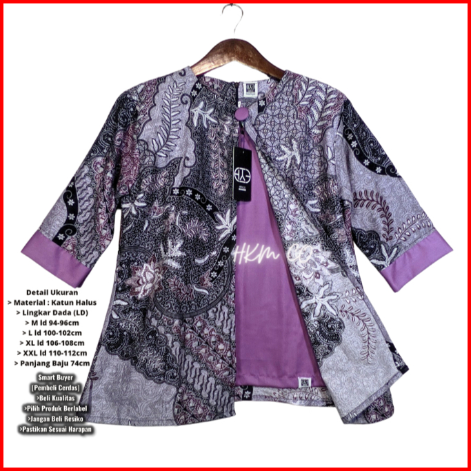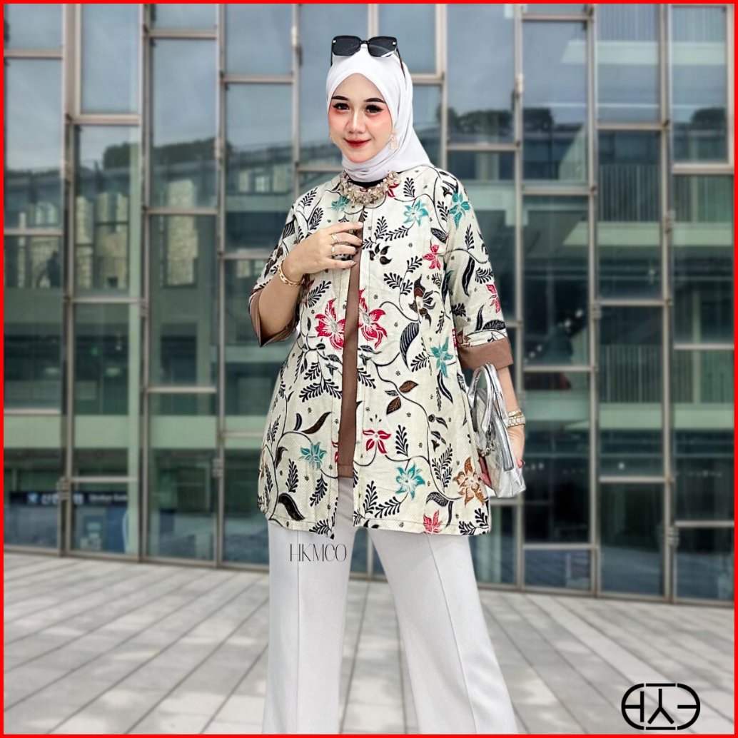 Atasan Blus Batik Retro Vintage Cewek Kekinian Lengan 3 4 Katun Halus Cantik Modis Kerja Ibu Kantoran