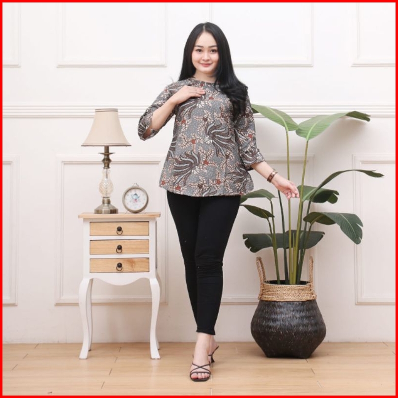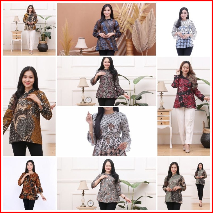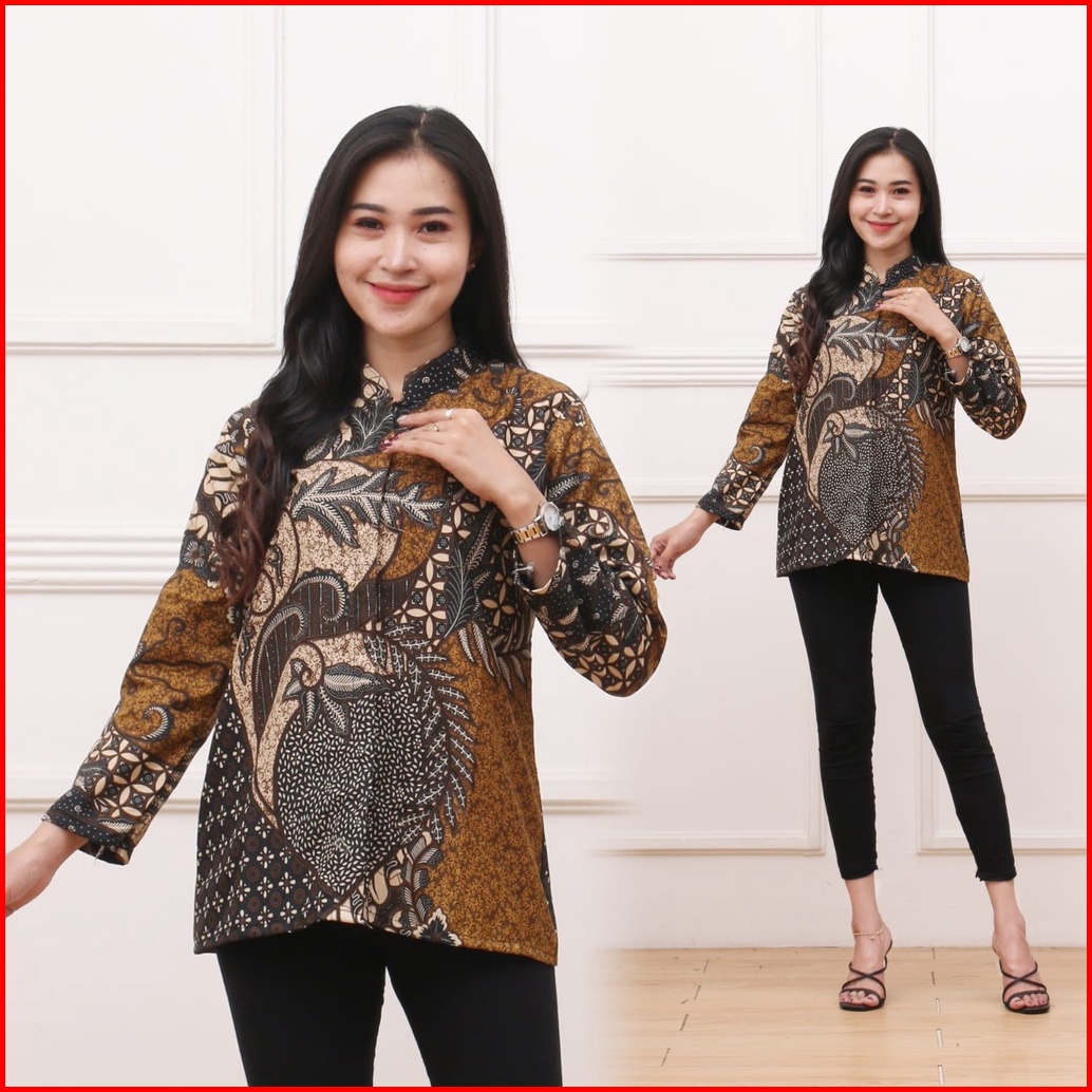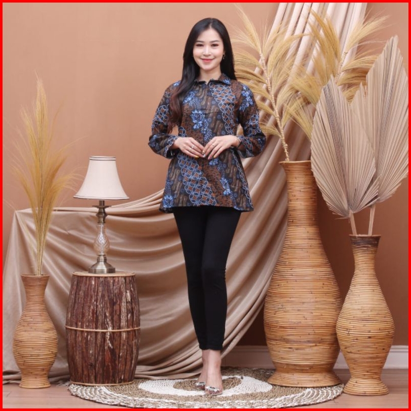 1 - Atasan Blouse Batik Wanita Lengan Panjang Sarimbit Couple Batik Pria Wanita