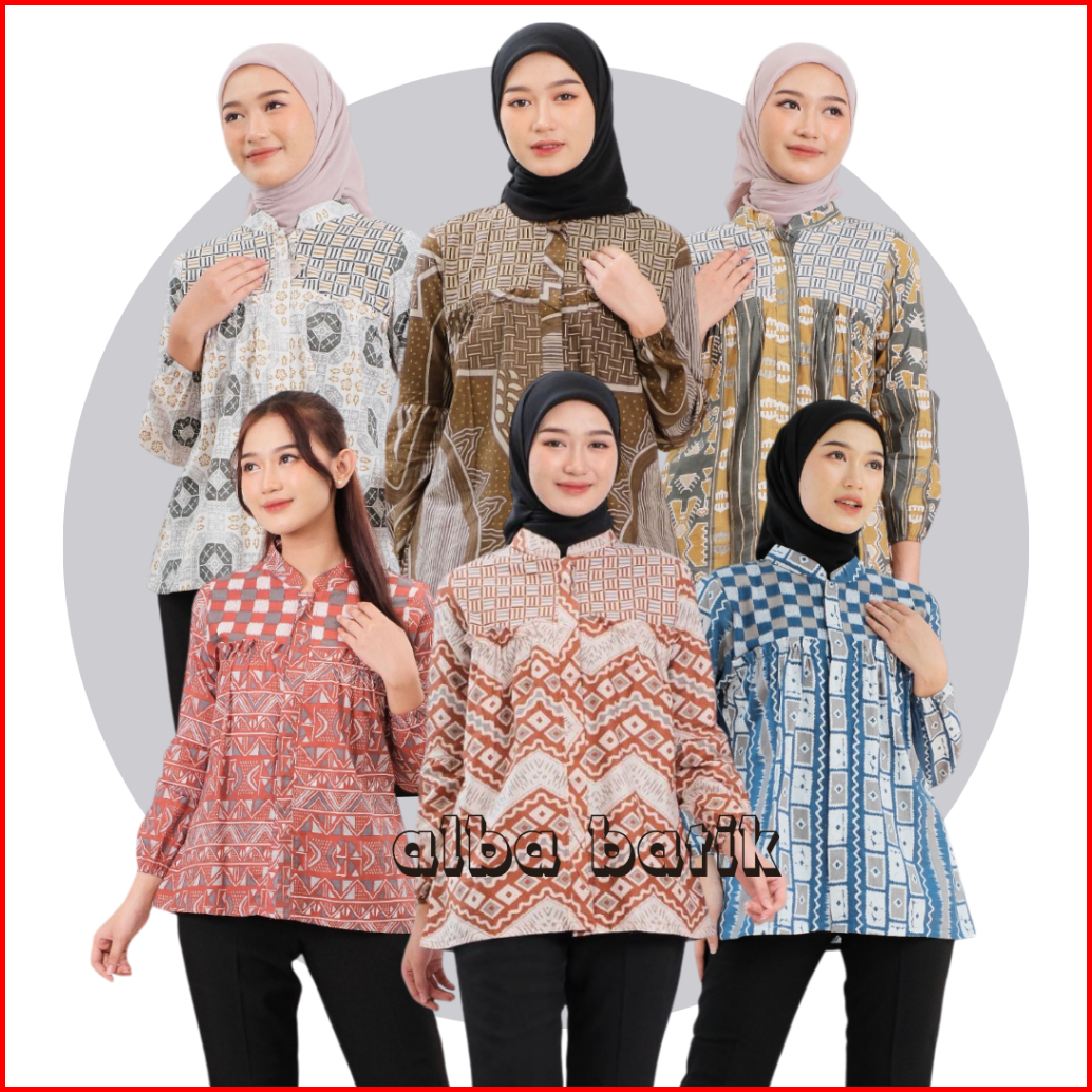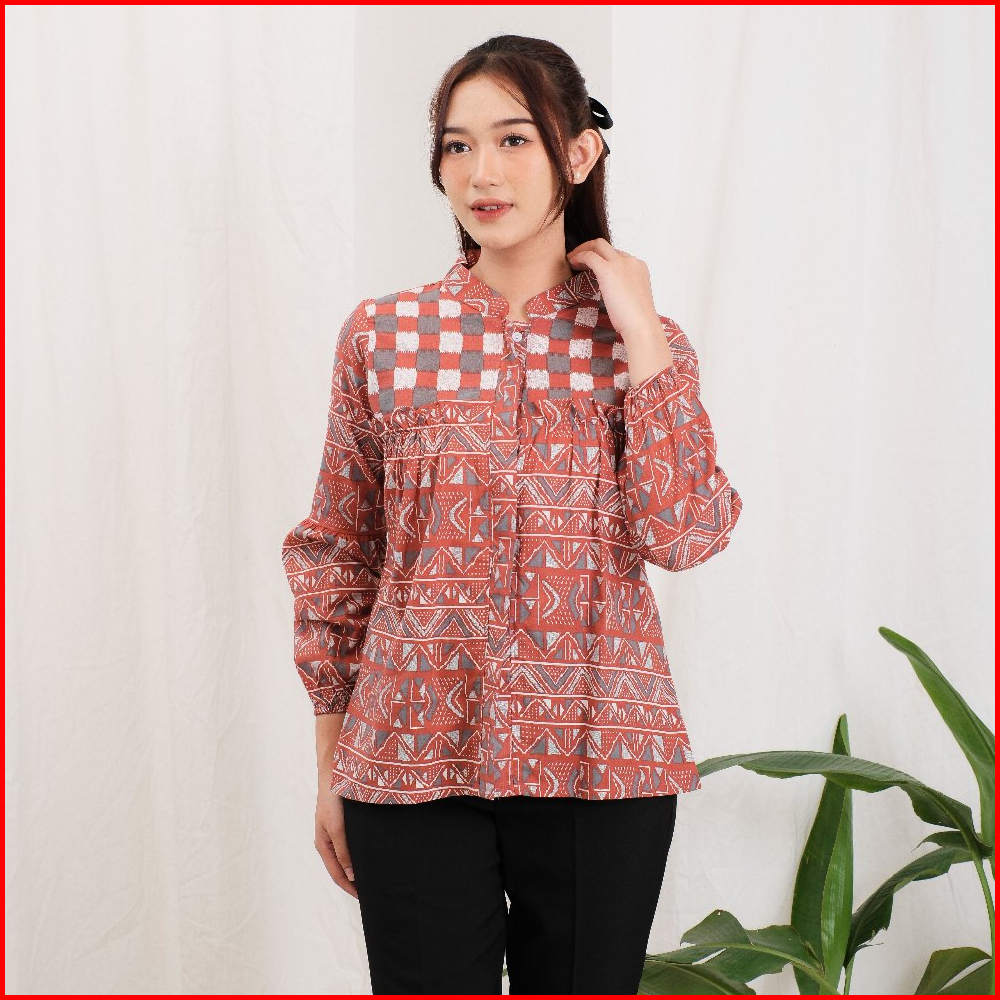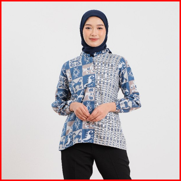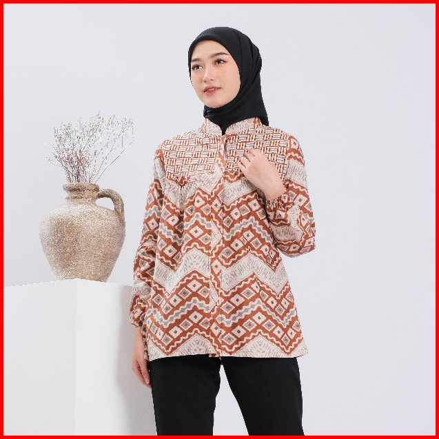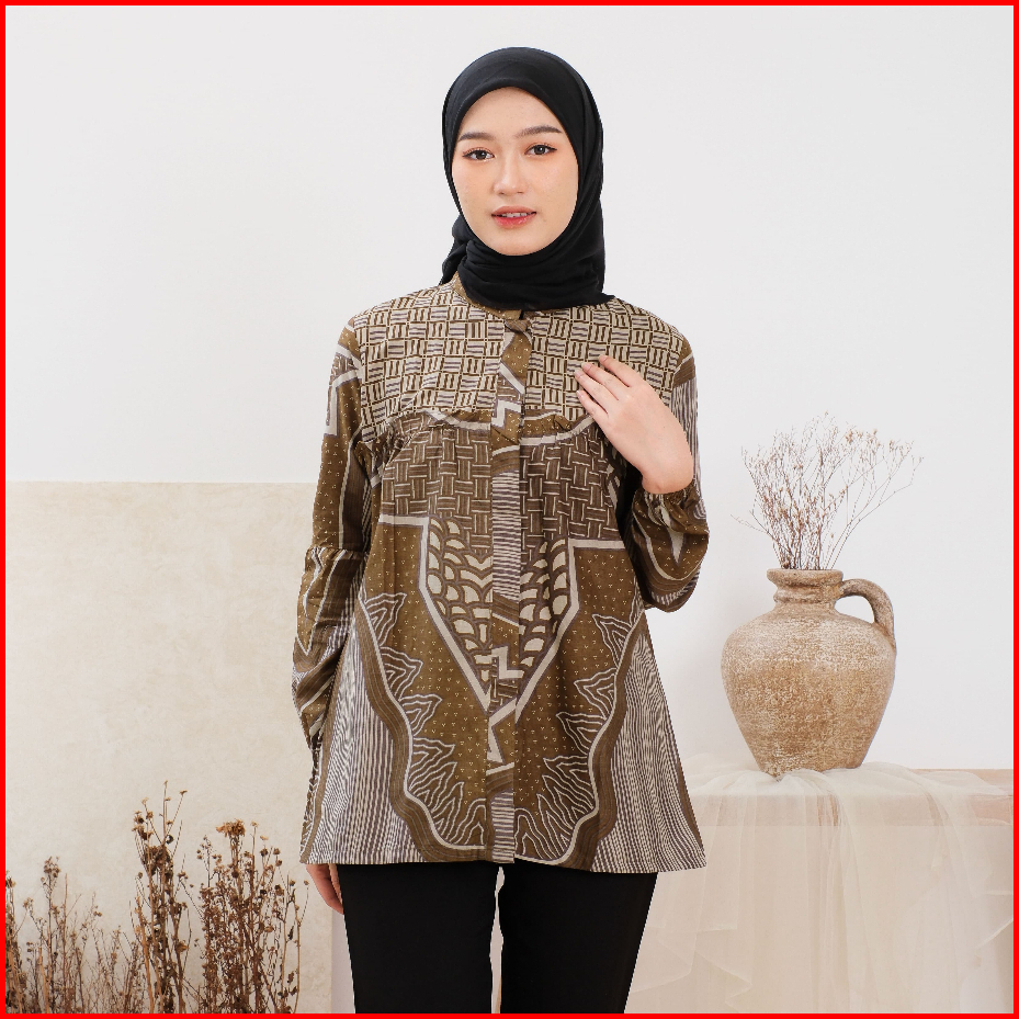 Batik Wanita Modern Lengan Panjang Blouse Batik Wanita Atasan Batik Kantor