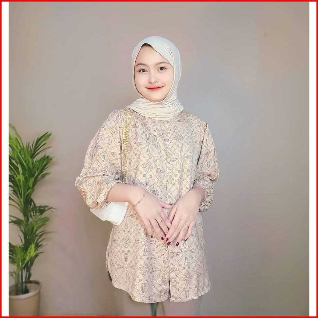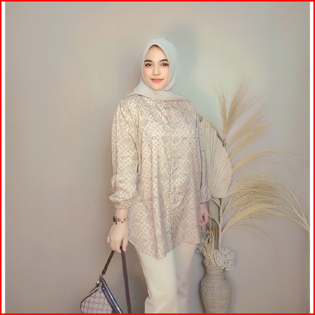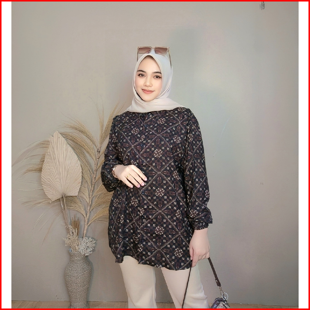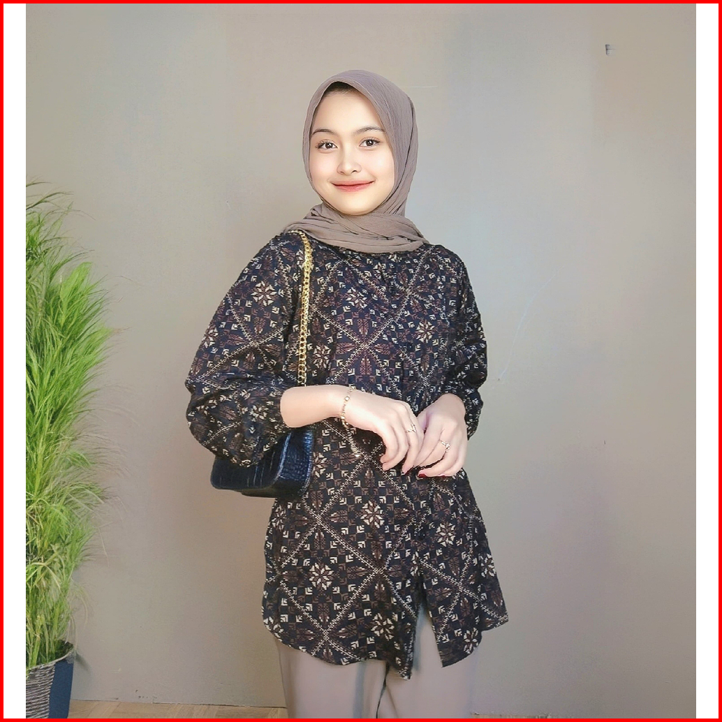 Kemeja Batik Wanita Oversize Rayon Premium Lengan Balon