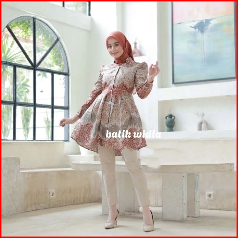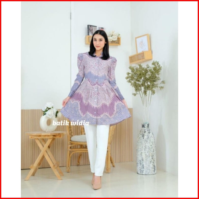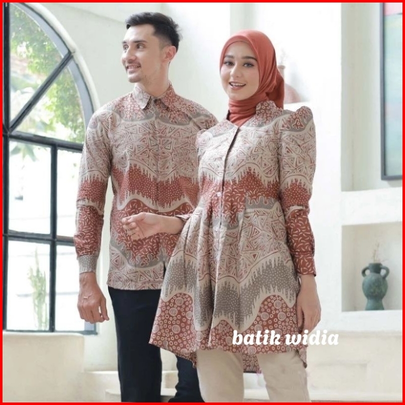 Couple Batik Tunik Batik Maharani Lengan Panjang Model Puffy Princes Kancing Depan
