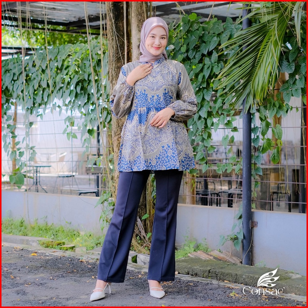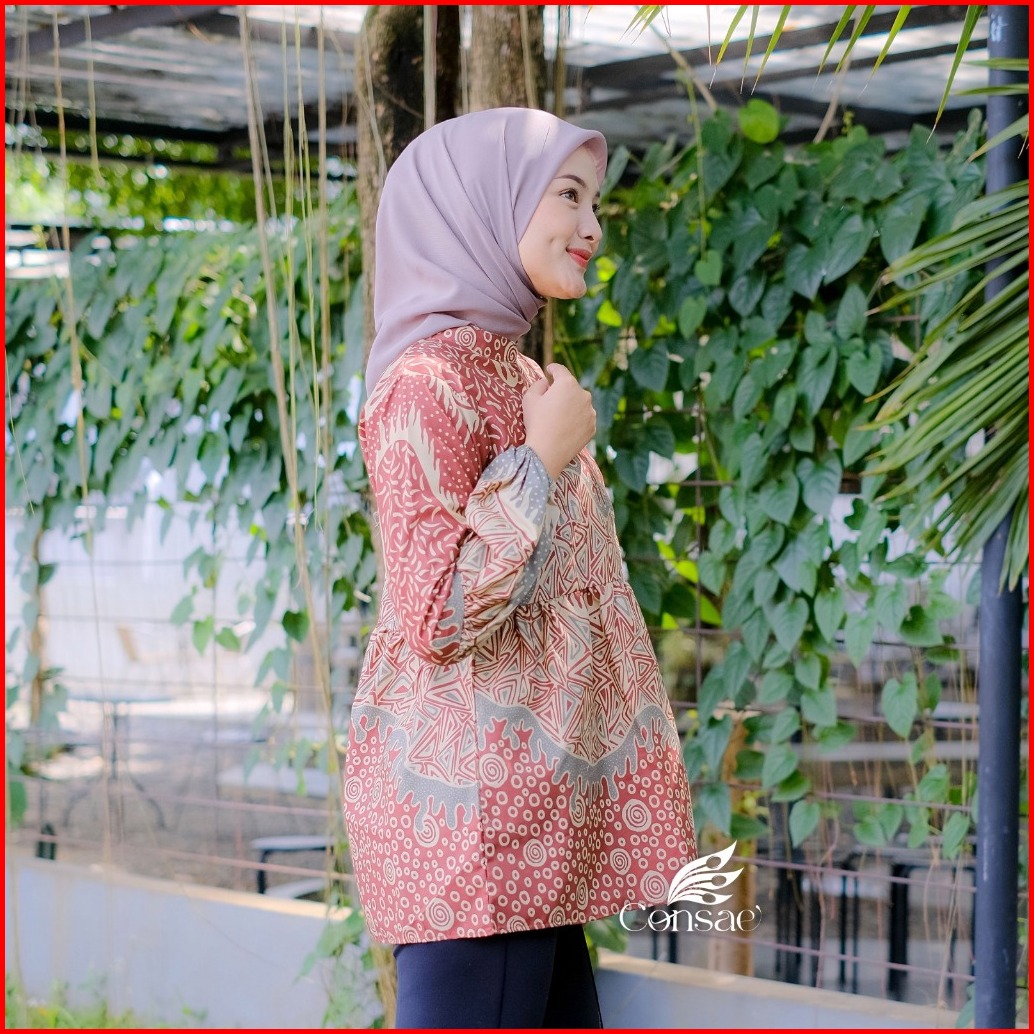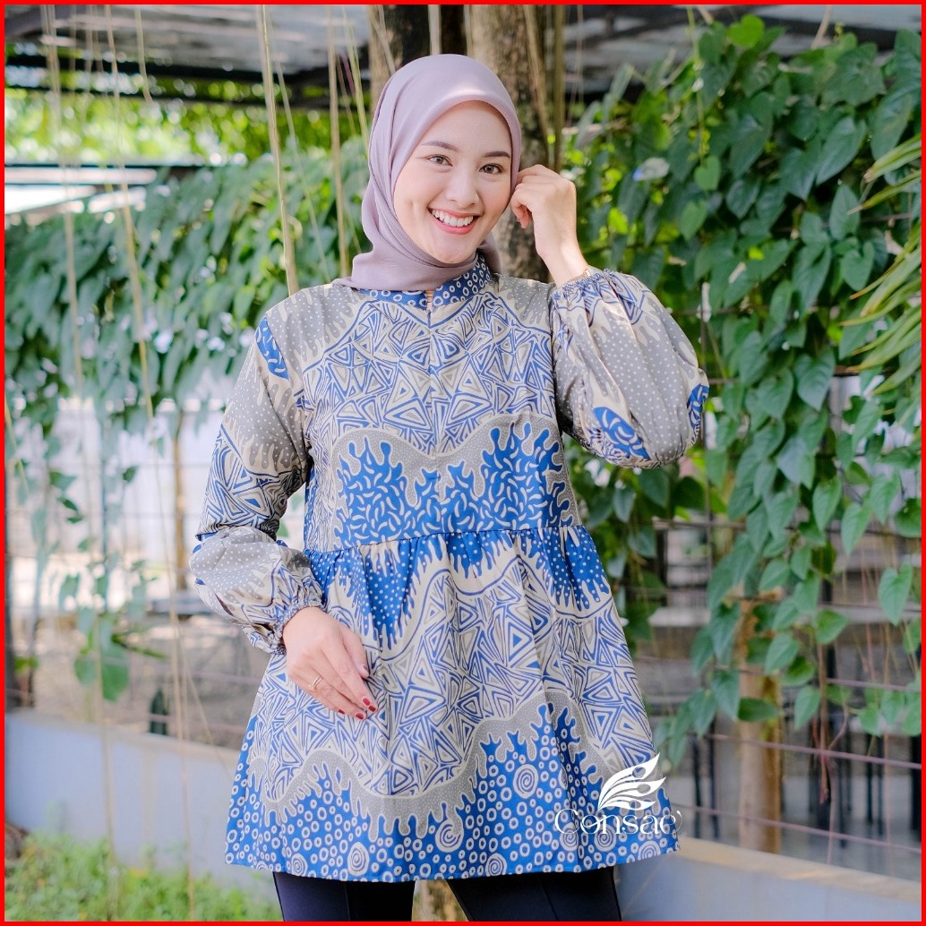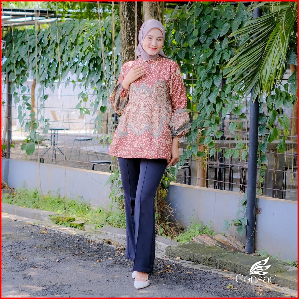 Consae Atasan Batik Wanita Blouse Wanita Balon Baju Batik Wanita Modern Batik Wanita Lengan Balon