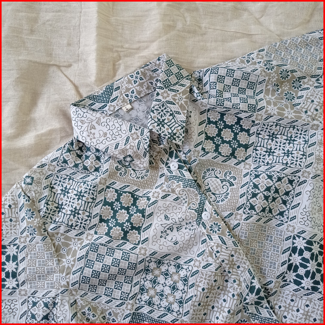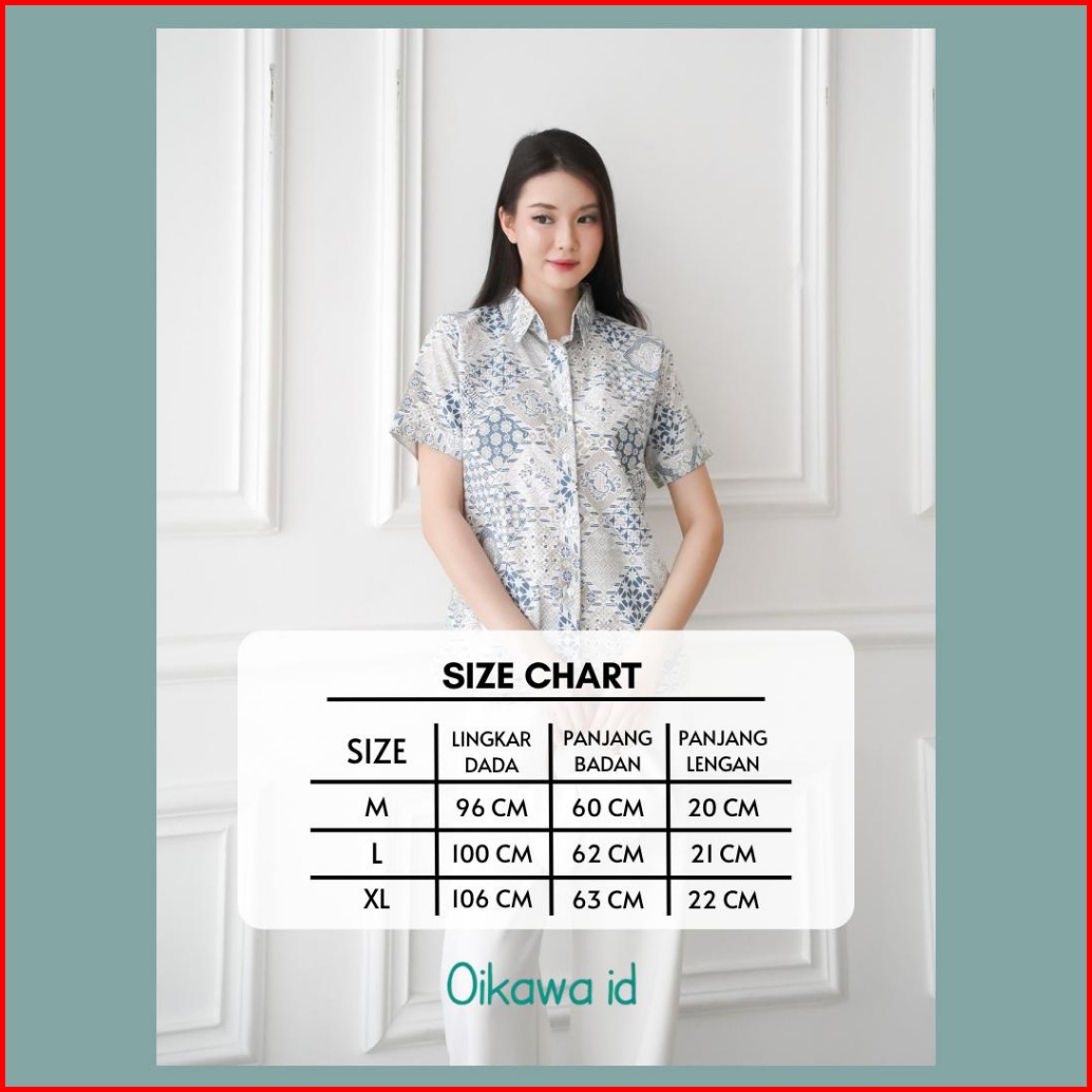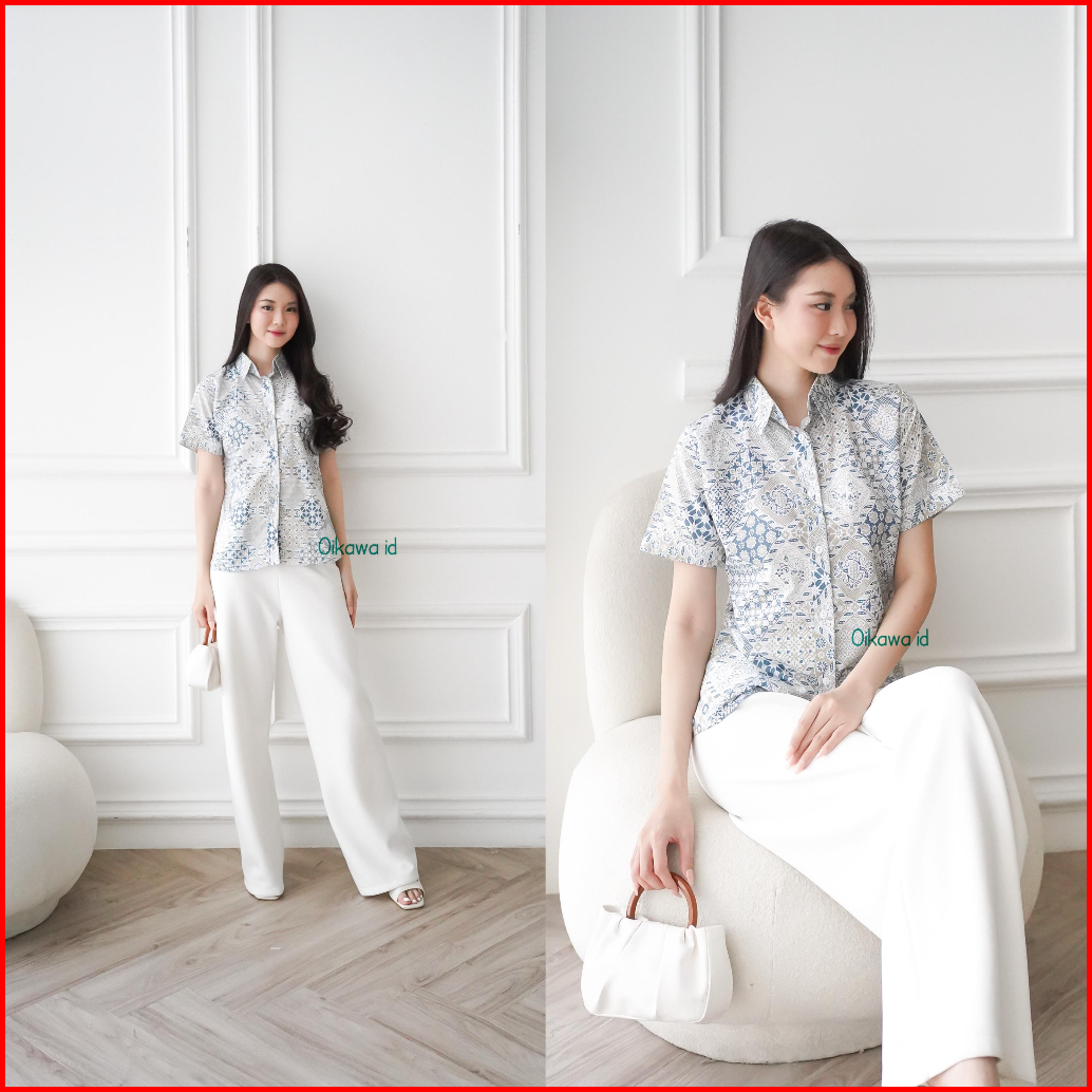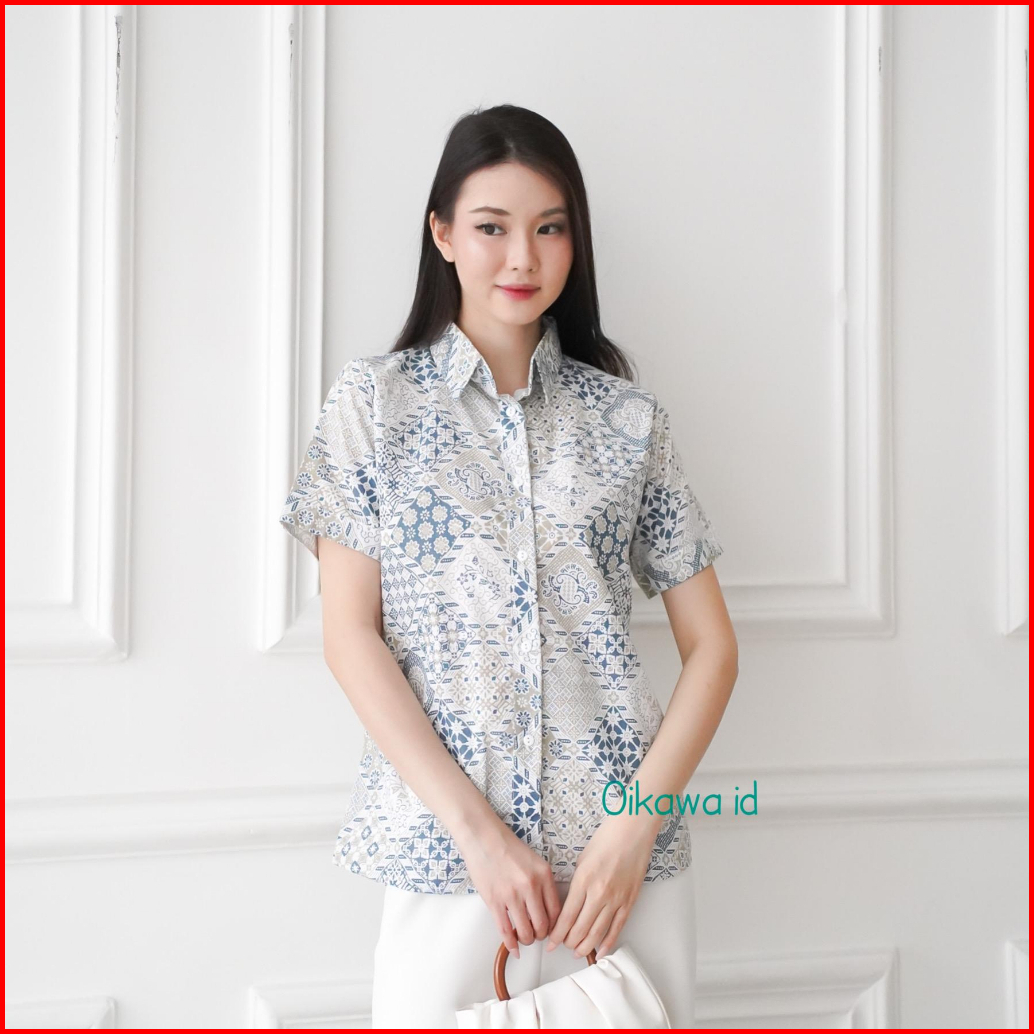 Kemeja Batik Wanita Lengan Pendek Atasan Motif Sidomukti