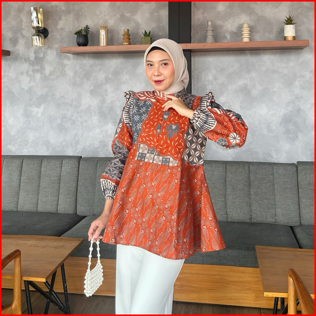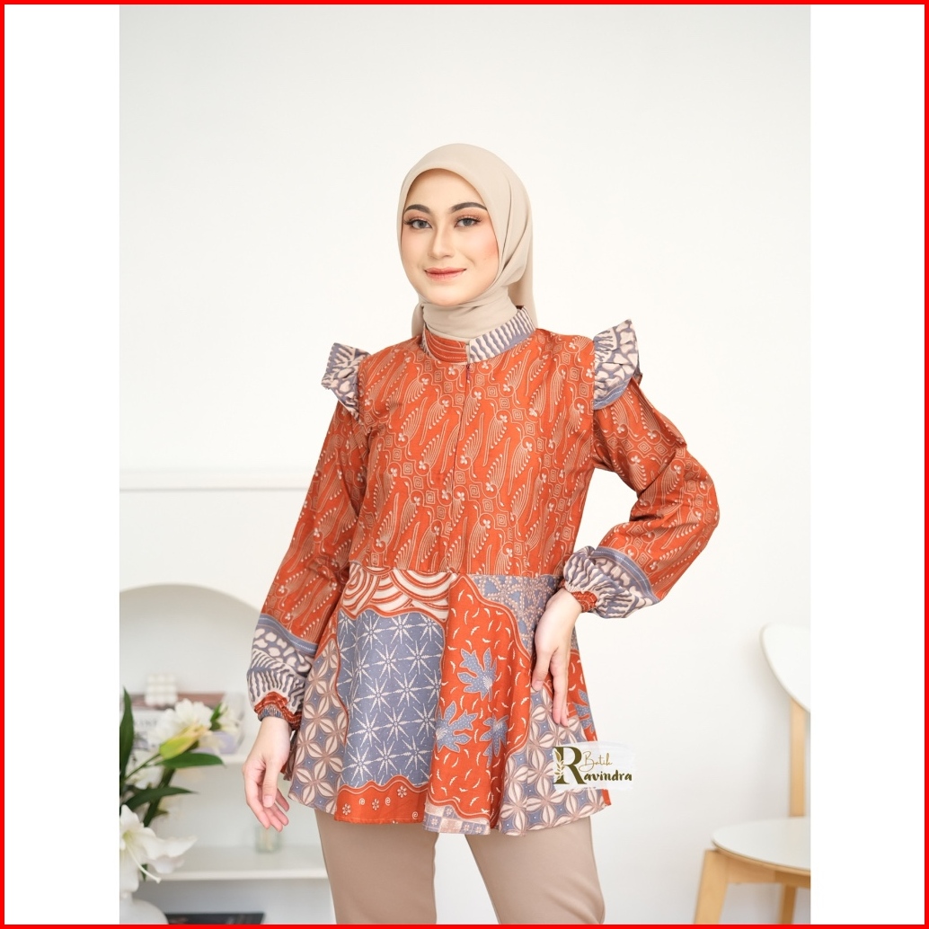 Batik Kerja Wanita Blouse Camelia Warna Teracota