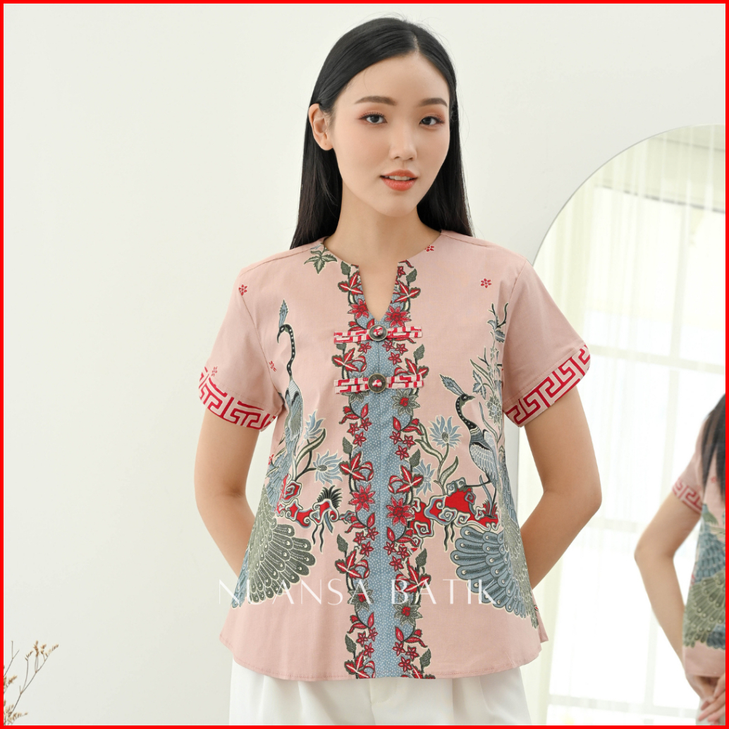 Nuansa Batik Blouse Batik Model Koin Lengan Pendek Bahan Katun Stretch