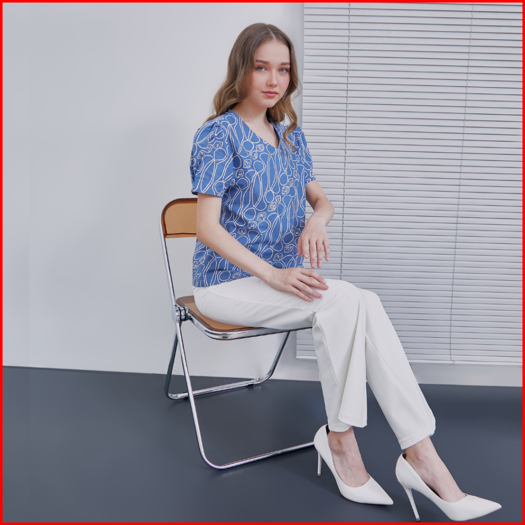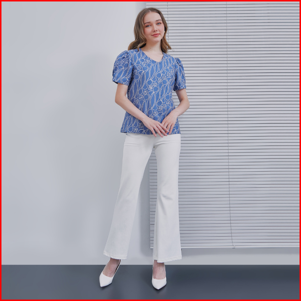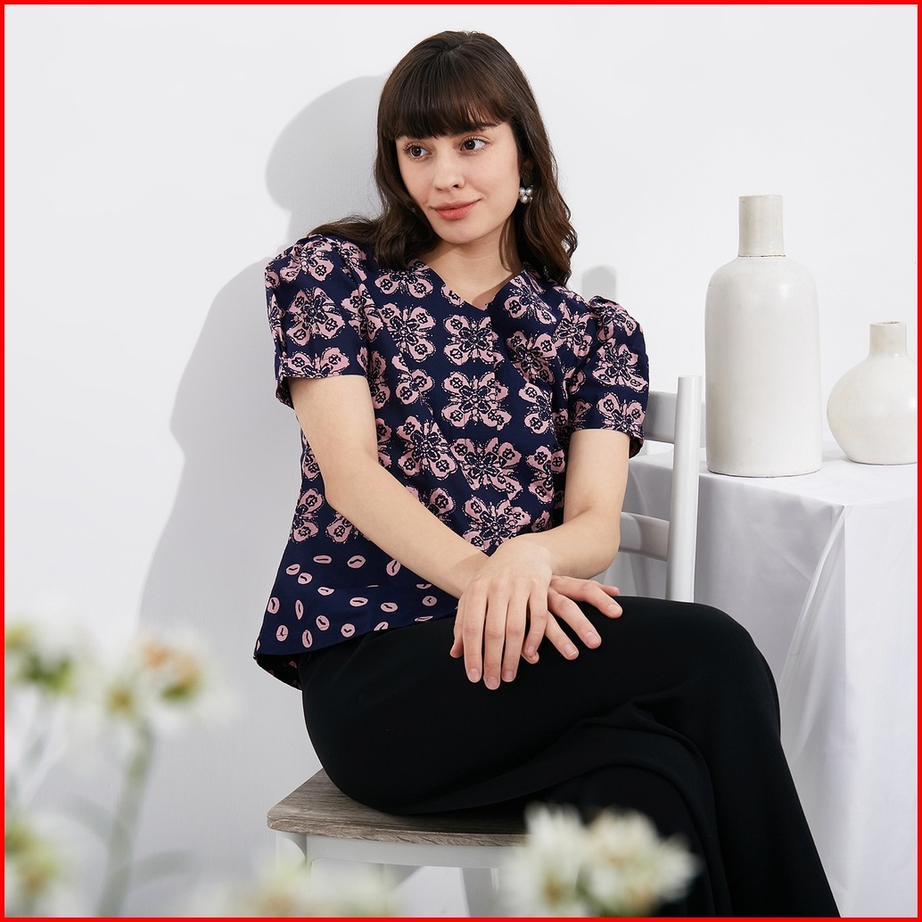 Nayara Aysel Blouse Batik Cotton Kerah V Neck Fashion Wanita