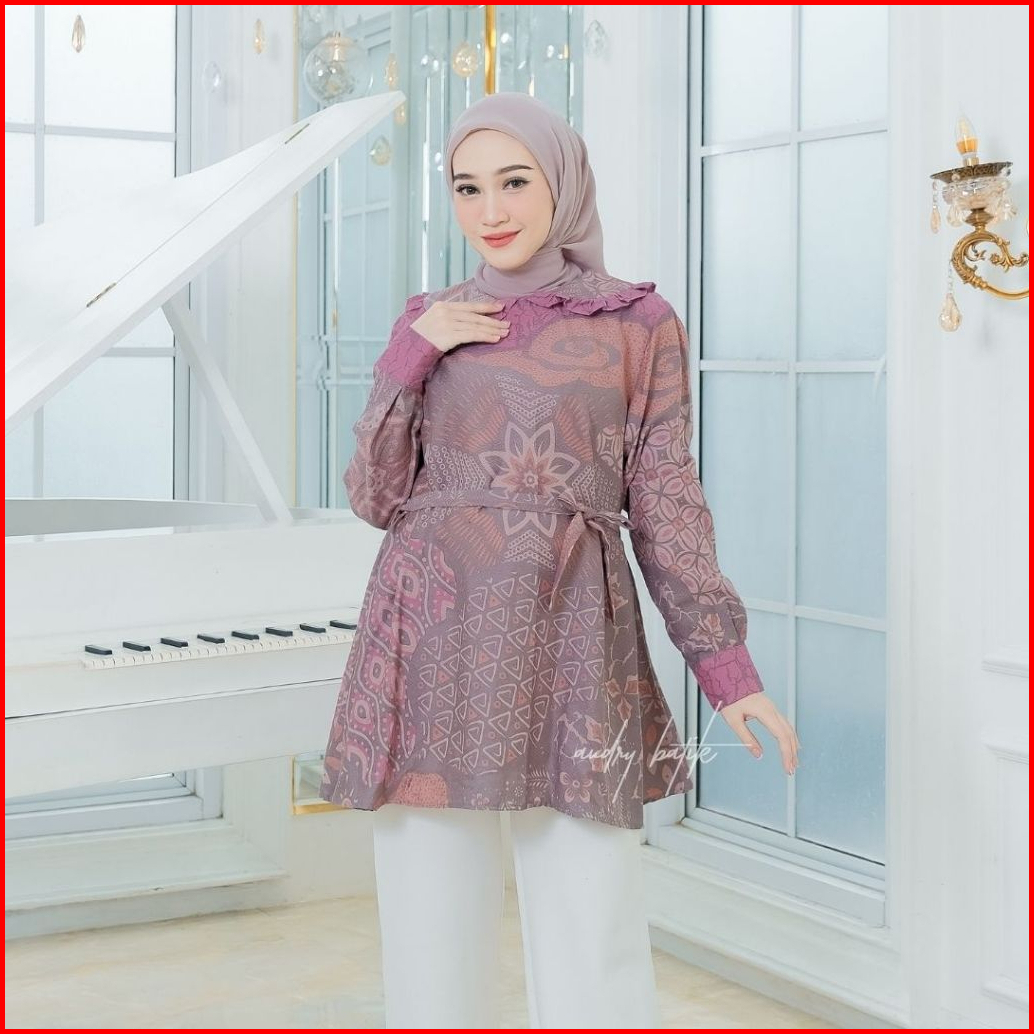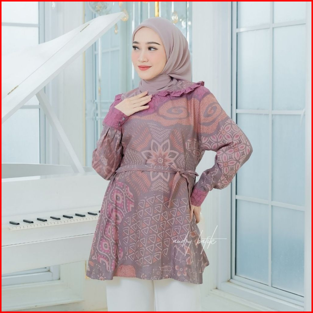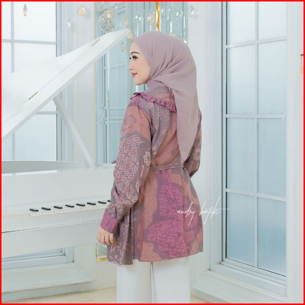 Audry Batik - Sharena - Batik Lebaran Wanita Panjang Hijab Motif Abstrak Pink Tosca