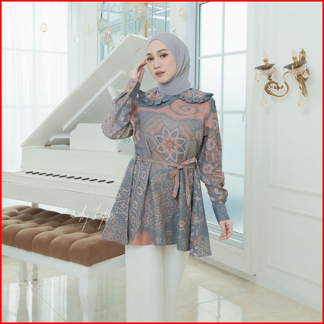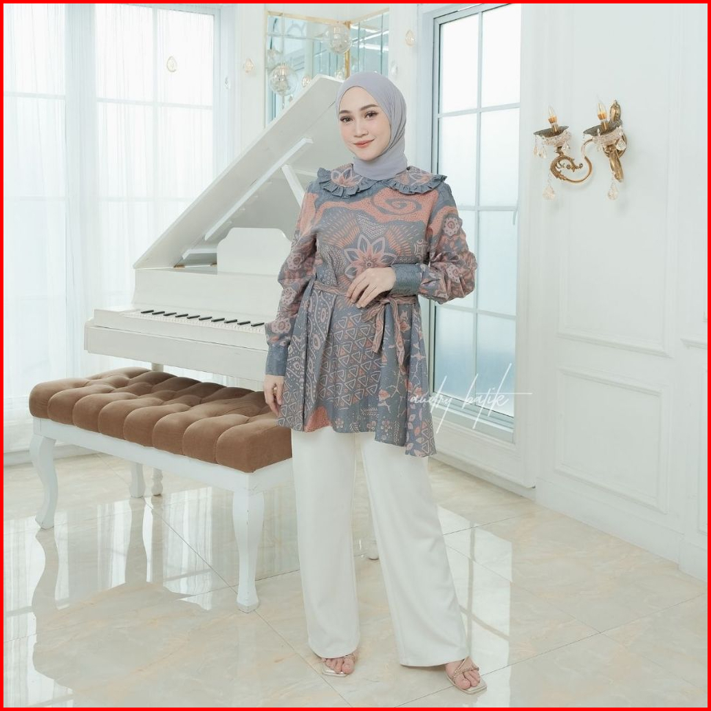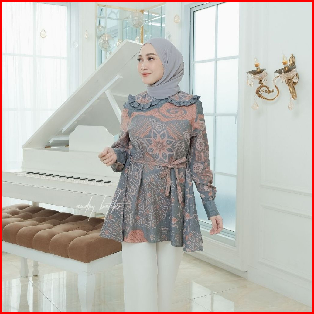 Audry Batik - Sharena - Batik Lebaran Wanita Panjang Hijab Motif Abstrak Pink Tosca