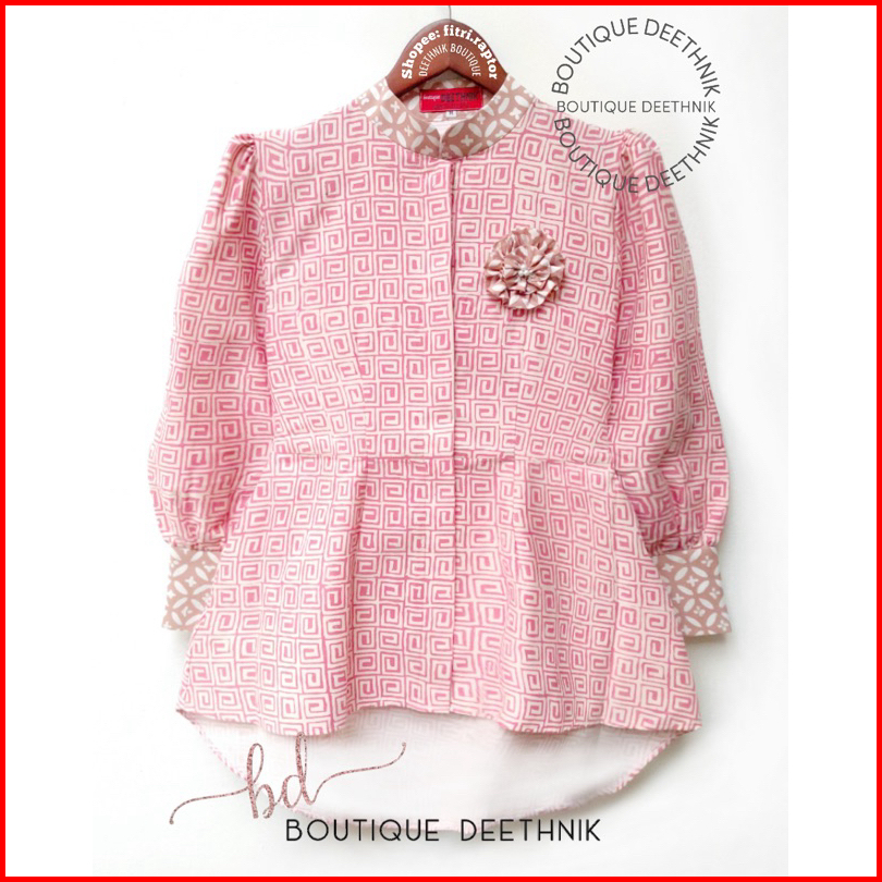 Blus Batik Warna Pink Model Peplum Kancing Depan