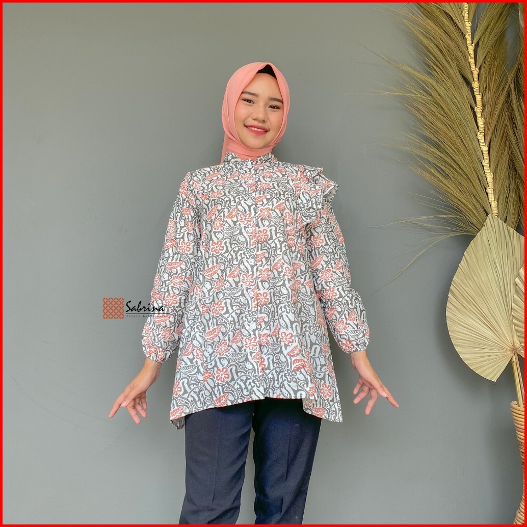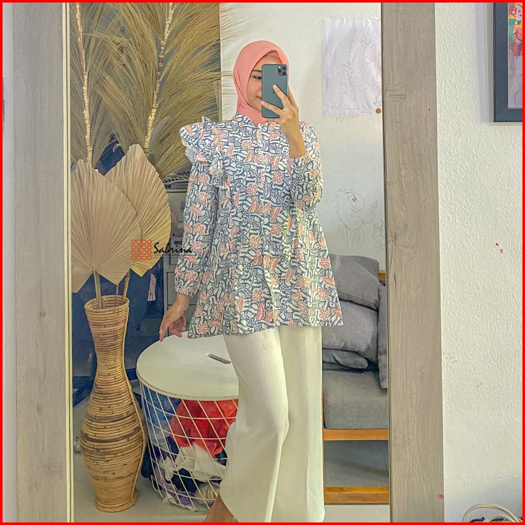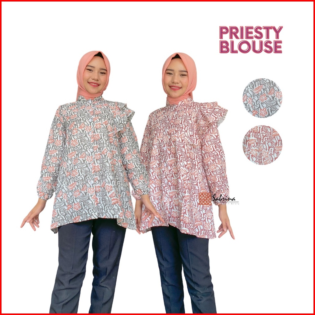 Blouse Batik Priesty Atasan Batik Kerja Kantor Wanita Busui Katun Soft Pastel Ruffle Rampel Modis Modern Kekinian