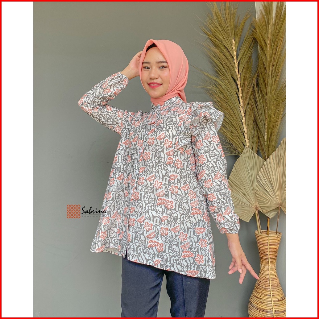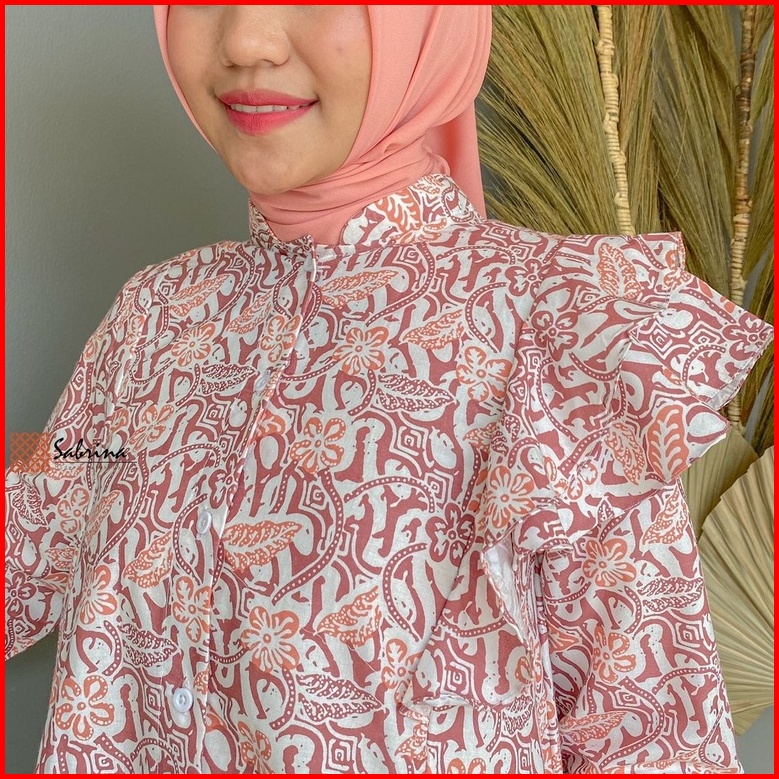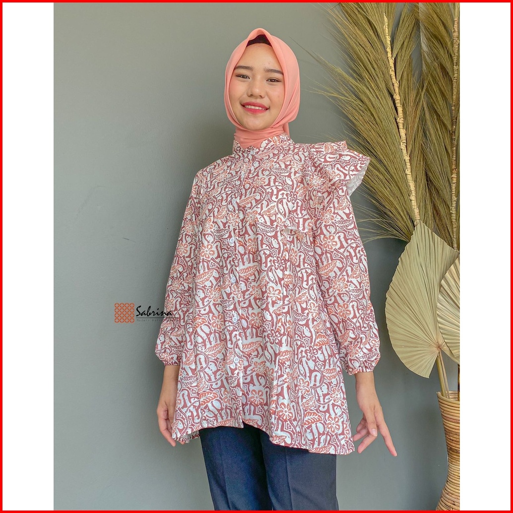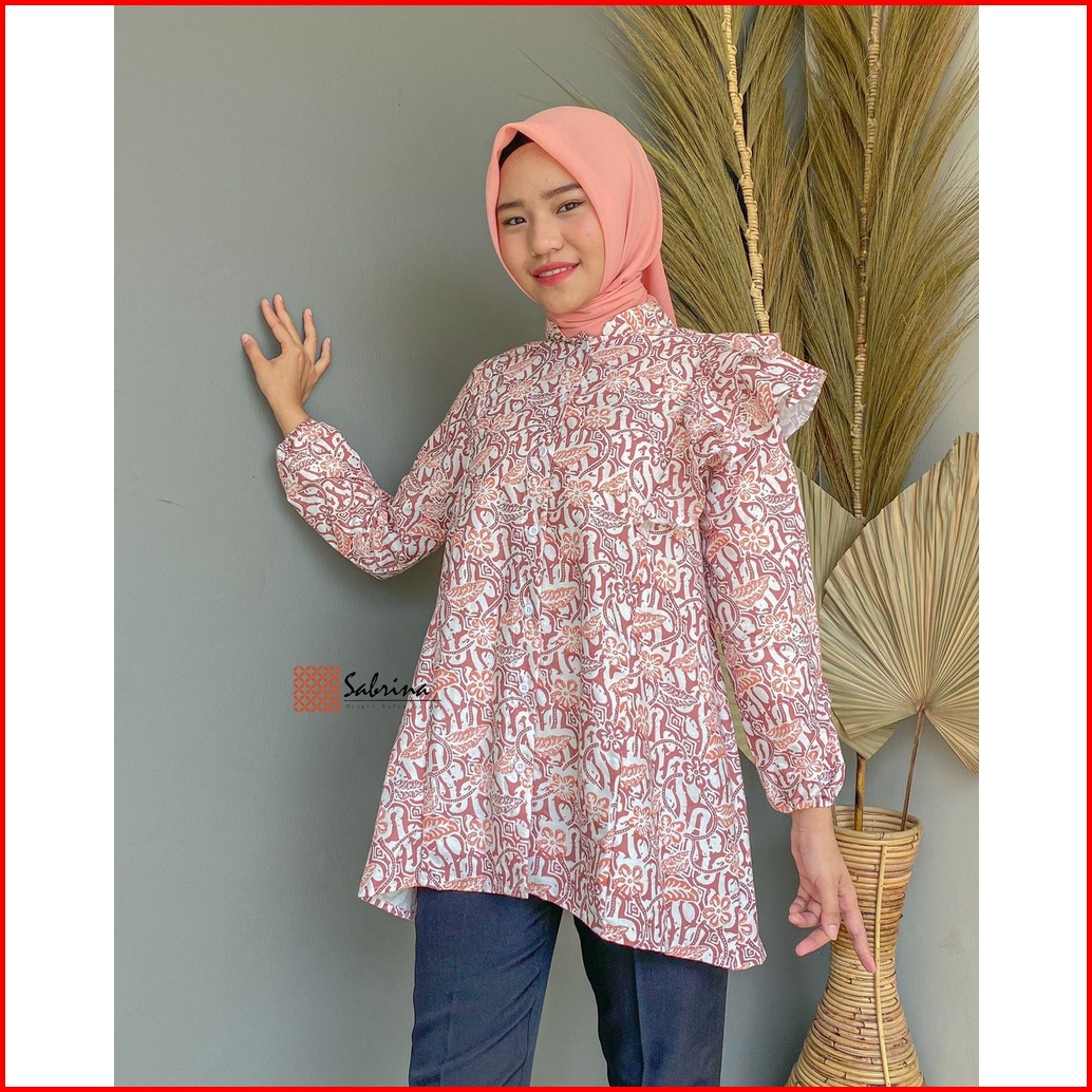 Blouse Batik Priesty Atasan Batik Kerja Kantor Wanita Busui Katun Soft Pastel Ruffle Rampel Modis Modern Kekinian