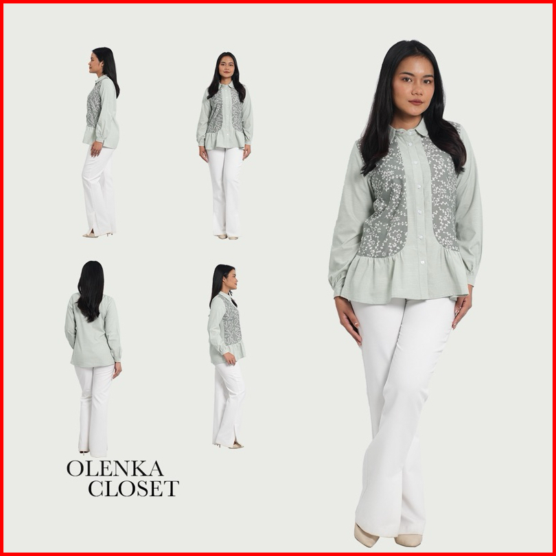 Atasan Batik 165 Sage Baju Blus Blouse Kerja Wanita Modern