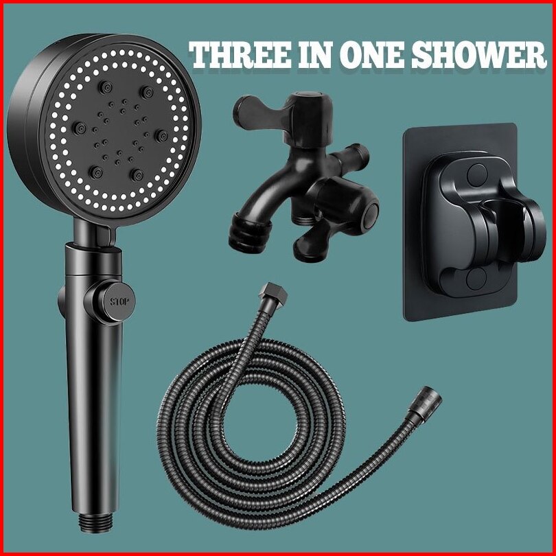 3in 1 Kepala Shower Set Mandi Hitam Premium Shower Head Set 5 Mode Adjustable Shower Dengan Selang Portable Kamar Mandi