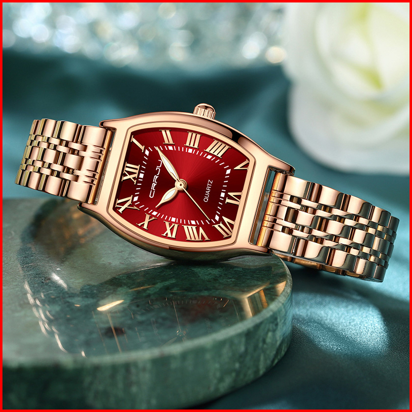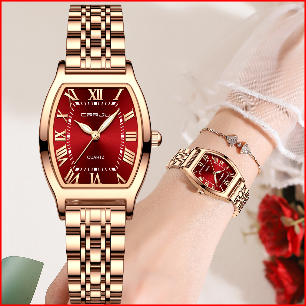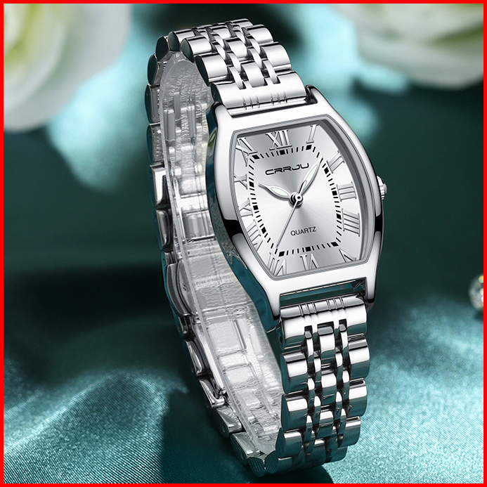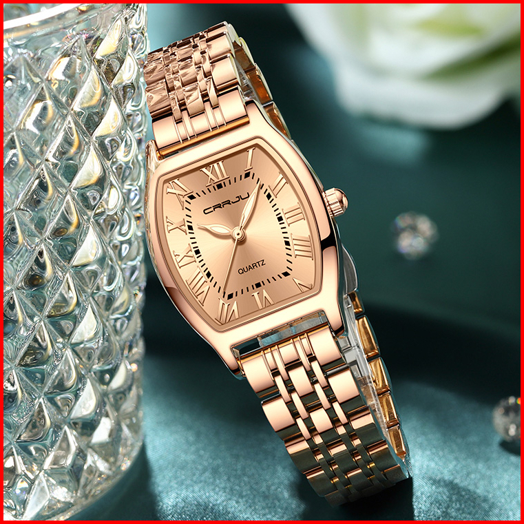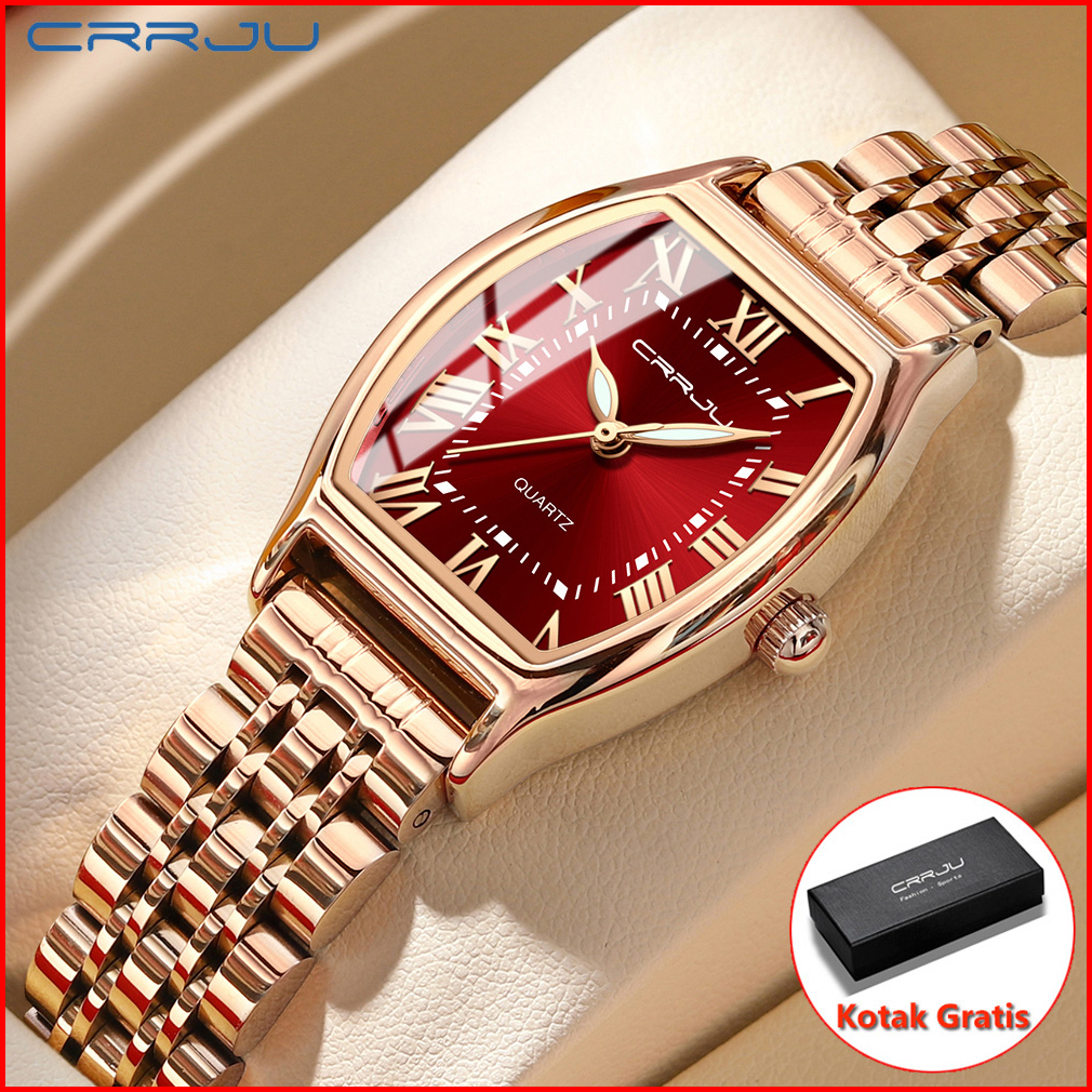 Crrju Jam Tangan Wanita Fashion Gaya Korea Stainless Steel Tahan Air Kuarsa Jam Tangan Cewek