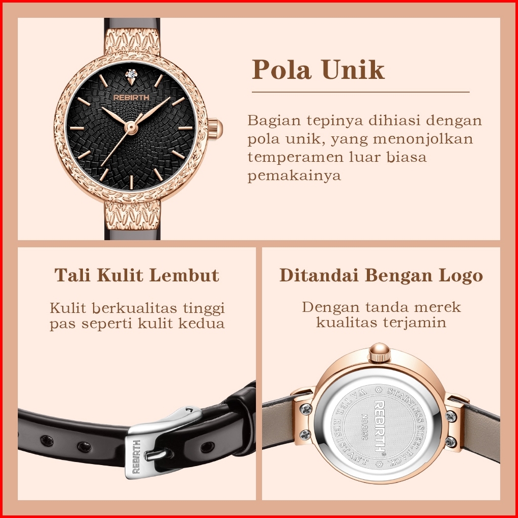 Rebirth Jam Tangan Wanita Korea Original Anti Air Kuarsa Tali Kulit Jam Wanita Kecil Jam Tangan Cewek