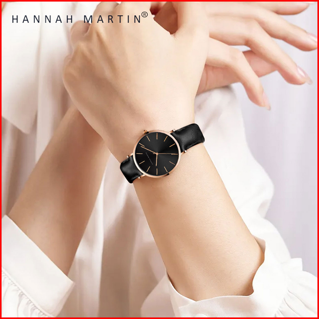 Hannah Martin Jam Tangan Wanita Sangat Tipis 100 Asli Modis Kecil Sederhana Kuarsa Jam Tangan Wanita Kulit Tahan Air Jam