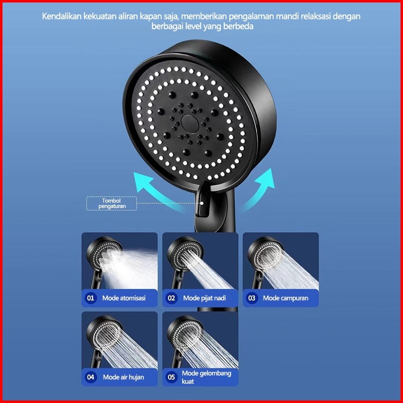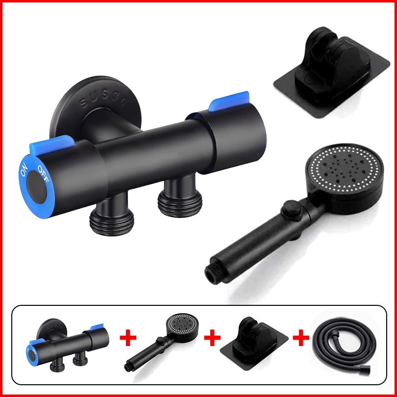 Paket Shower Genggam Shower Mandi Kran Cabang Shower Hitam Black Keran Pipa Penghubung Dudukan