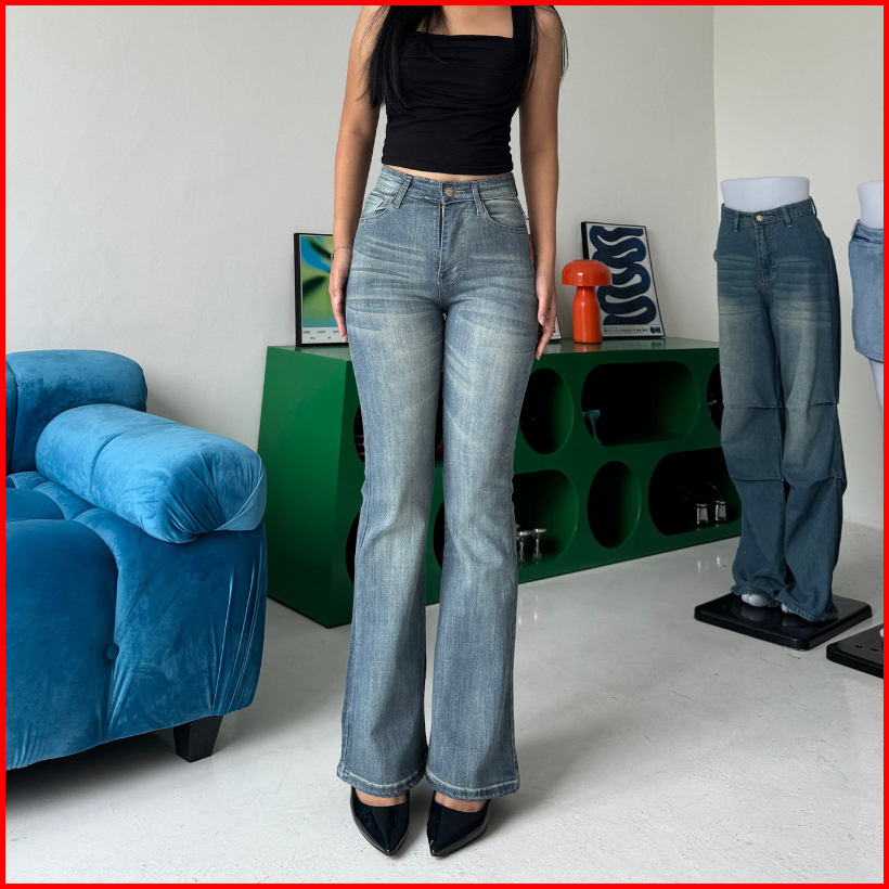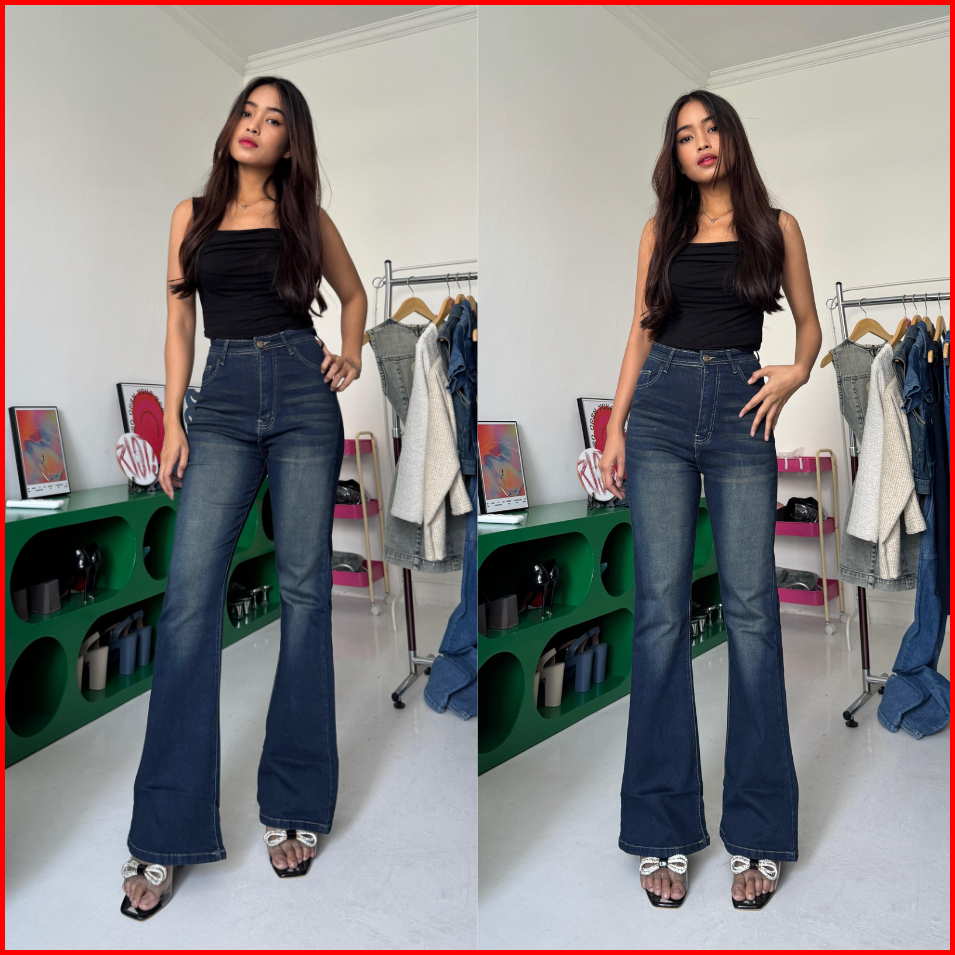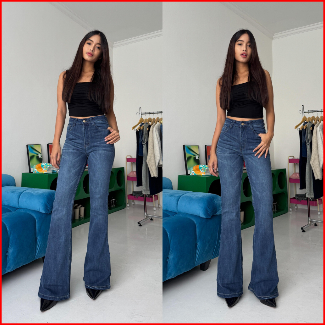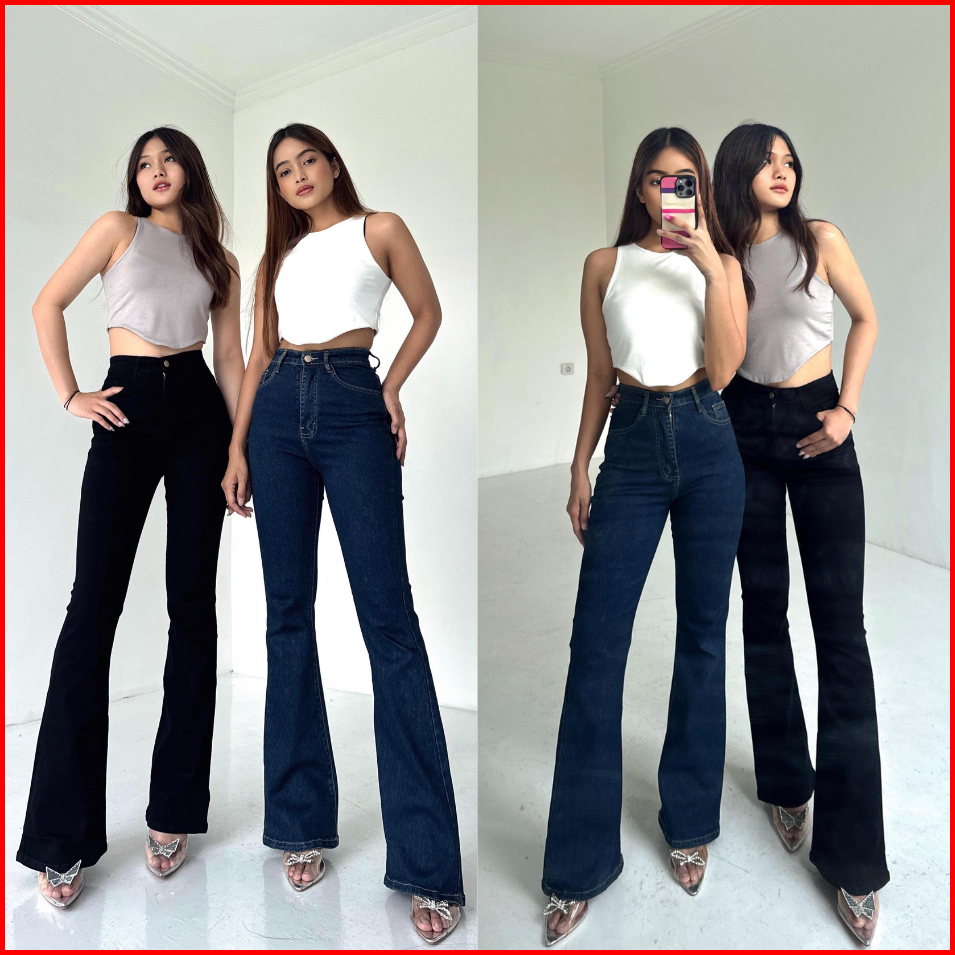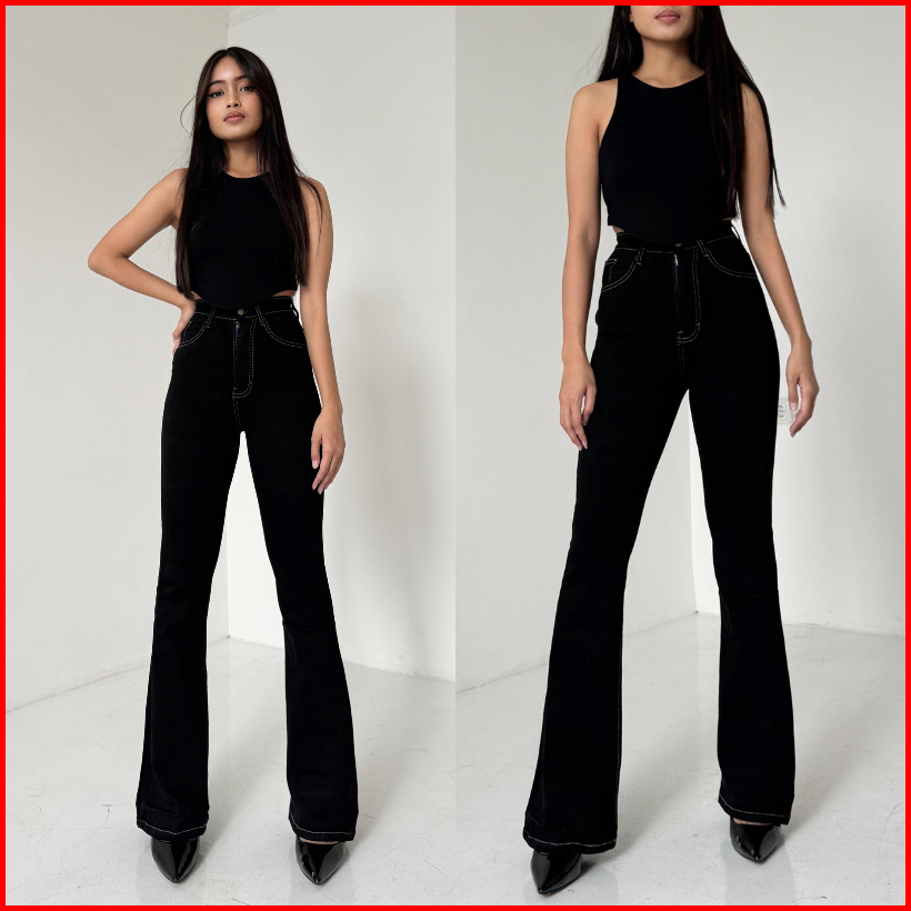 Ladouce - Victoria High Waist Cutbray Jeans Black Celana Panjang Flare Wanita Hitam