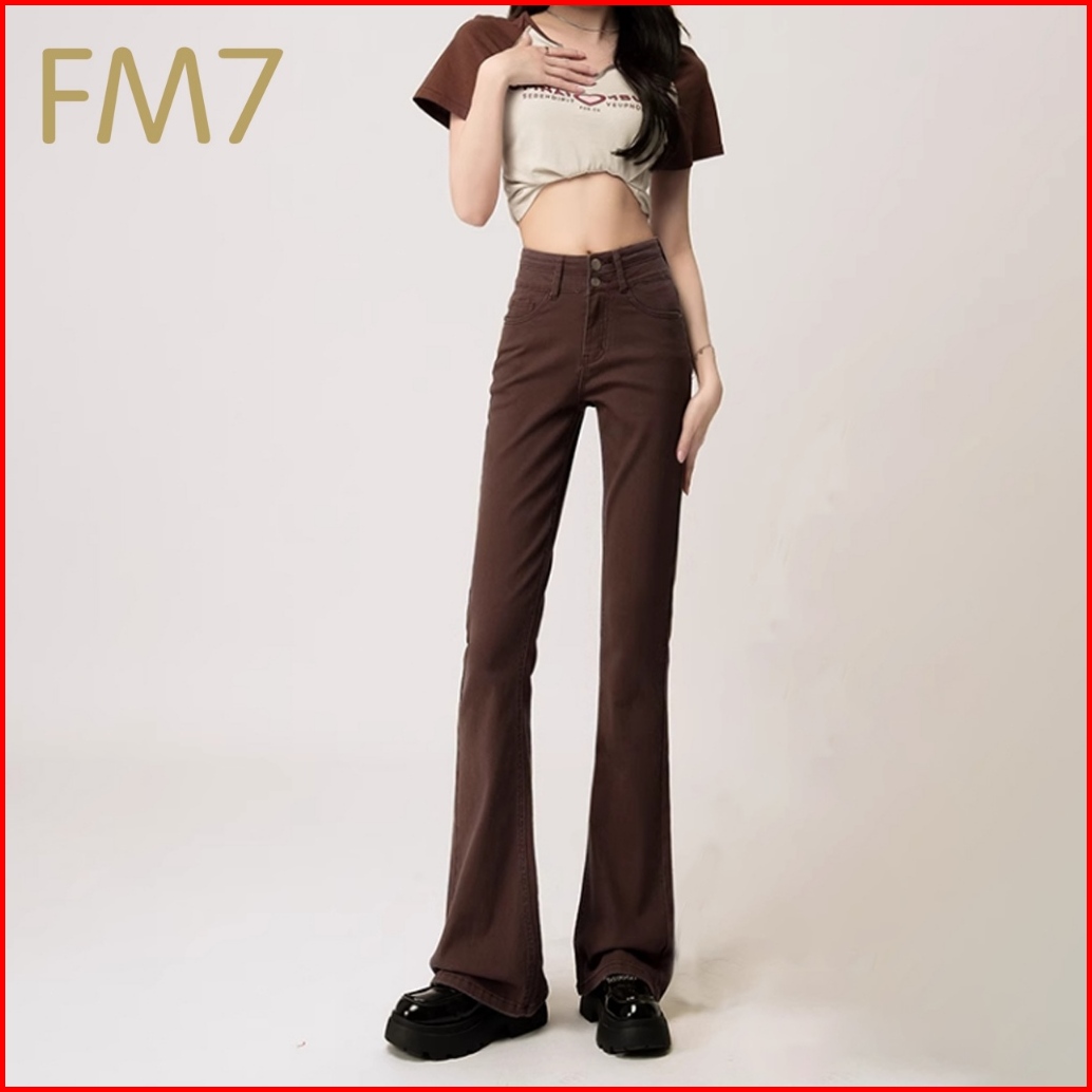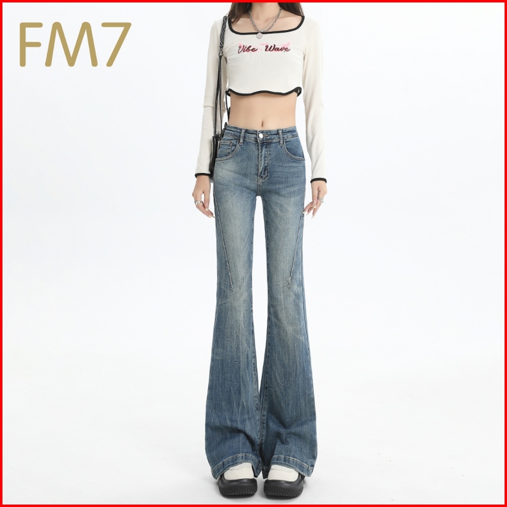 Fm7 L157 Korean Highwaist Celana Cutbray Flare Celana Jeans Wanita - Biru