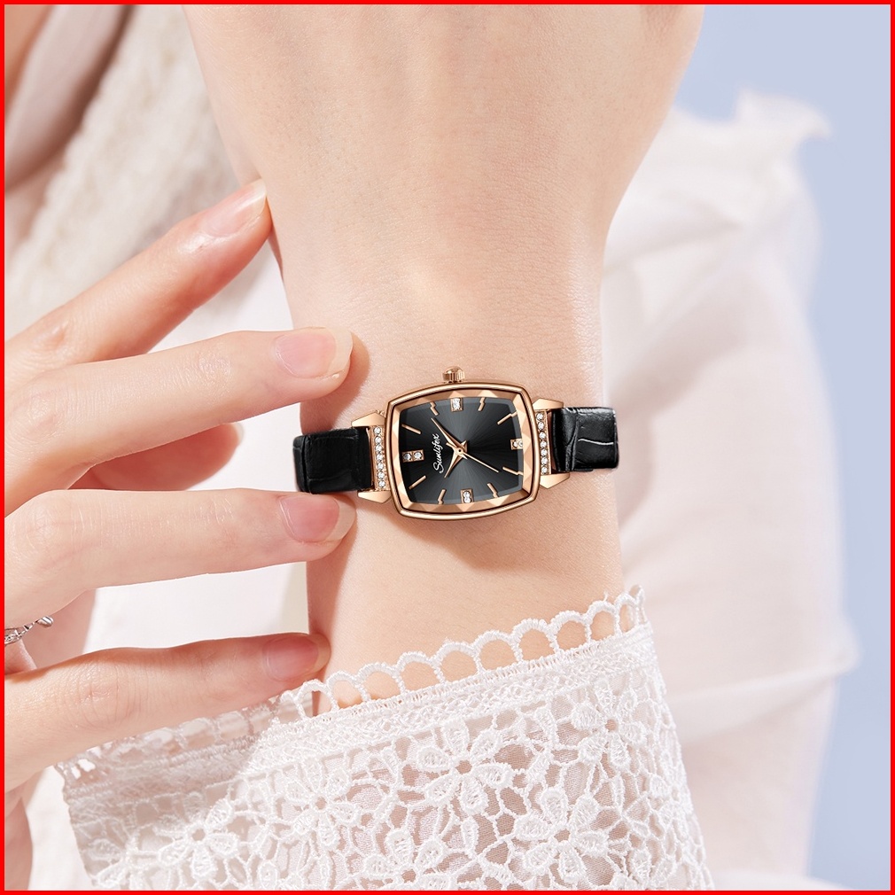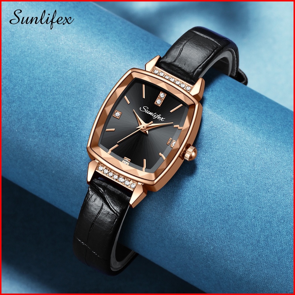 Sunlifex Jam Tangan Wanita 8006 Original Berlian Anggun Tali Kulit Kuarsa Jam Tangan Cewek