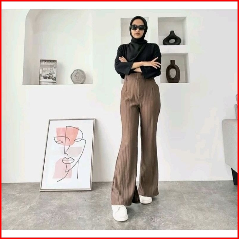 Celana Cutbray Knit Wanita Jumbo Highwaist Knit Cutbray Wanita Premium