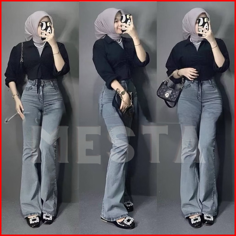 Celana Jeans Wanita Cutbray Highwaist - Celana Cutbray Jeans Flare Jumbo Panjang Premium
