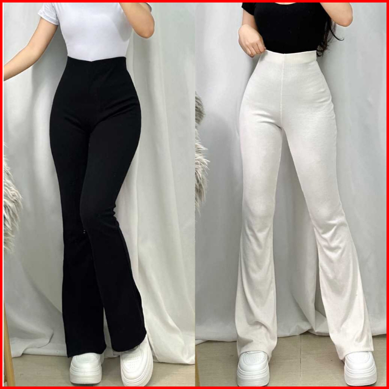 Celana Cutbray Flare Pants Scuba Premium Bahan Stretch Melar Pinggang Highwaist Full Karet Nonresleting