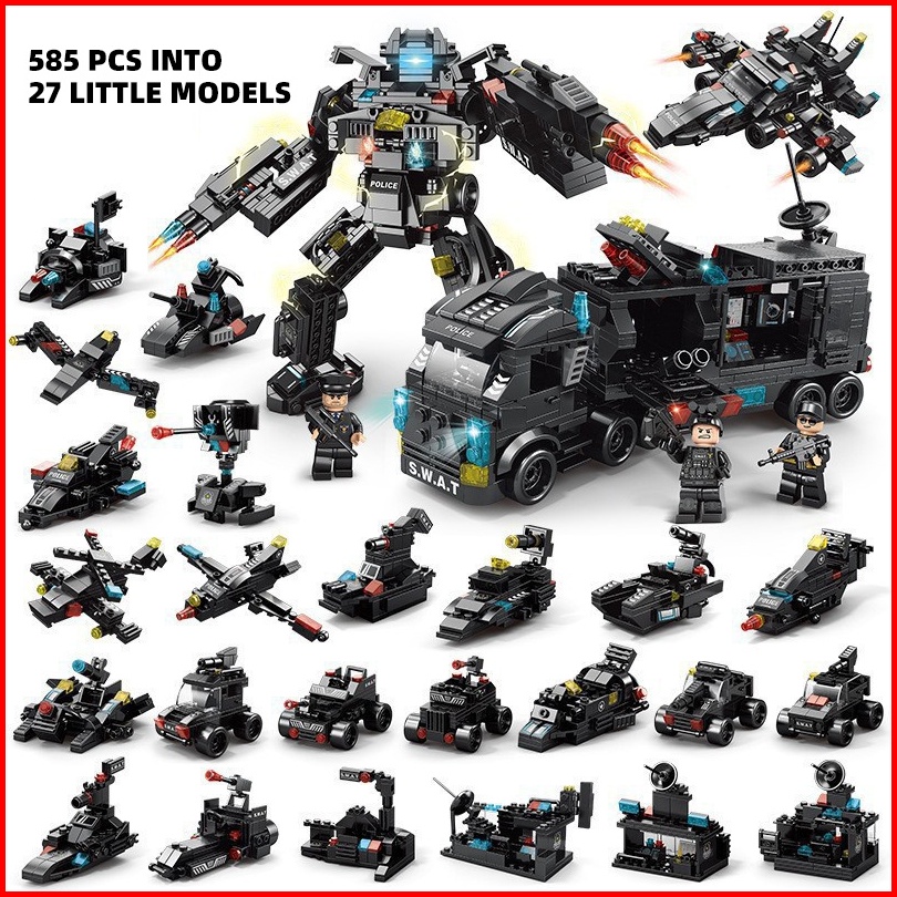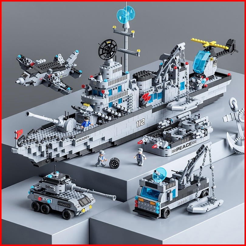 Mainan Blok Military Swat Building Block 1000pcs Set Urban Police Warship Battleship Robot Kapal Penjelajah Brick Set Ma