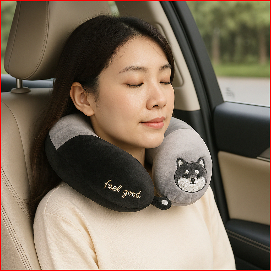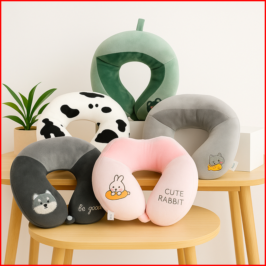 Bantal Leher Lucu Berbentuk Tidur Siang Mewah Busa Travel Portabel Mobil Pesawat Kantor Neck Pillow