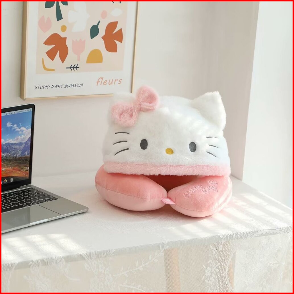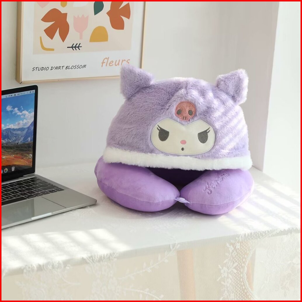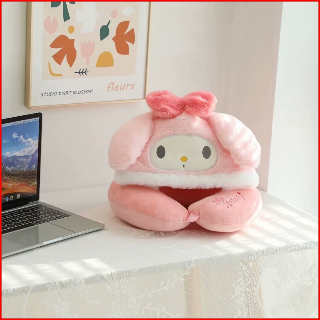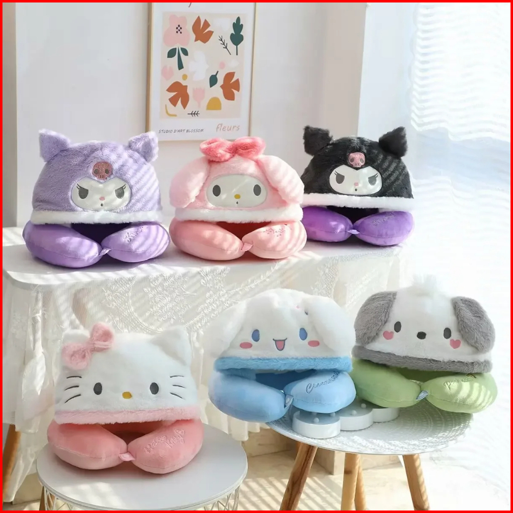 Bantal Leher Hoodie Karakter Lucu Sanrio Hello Kitty U-shaped Pillow Anime My Melody Topi Terbaru