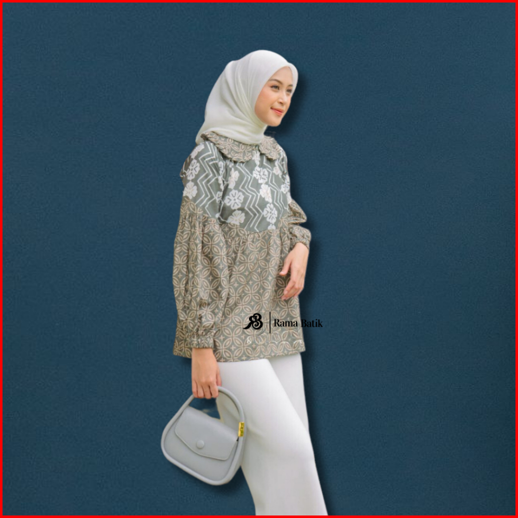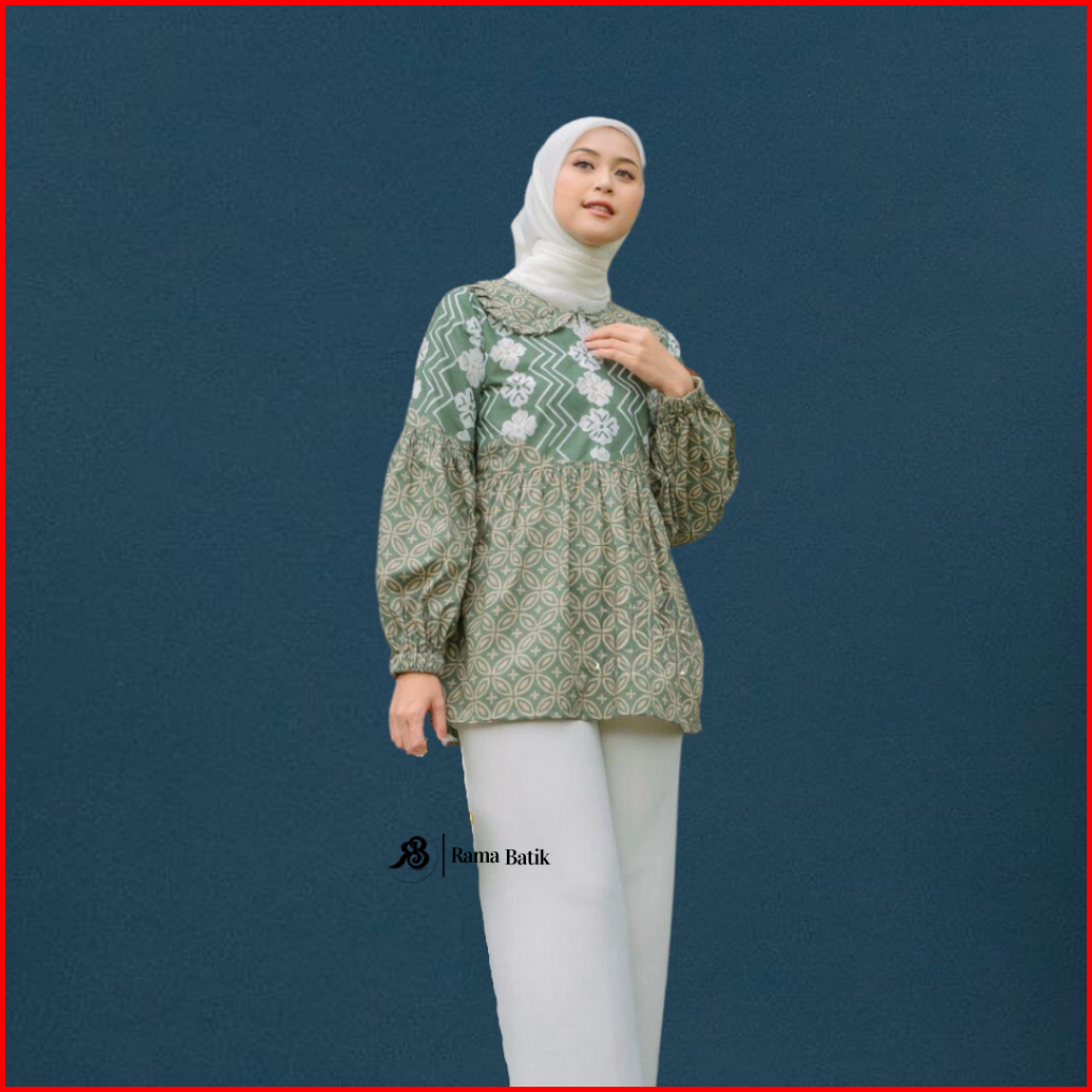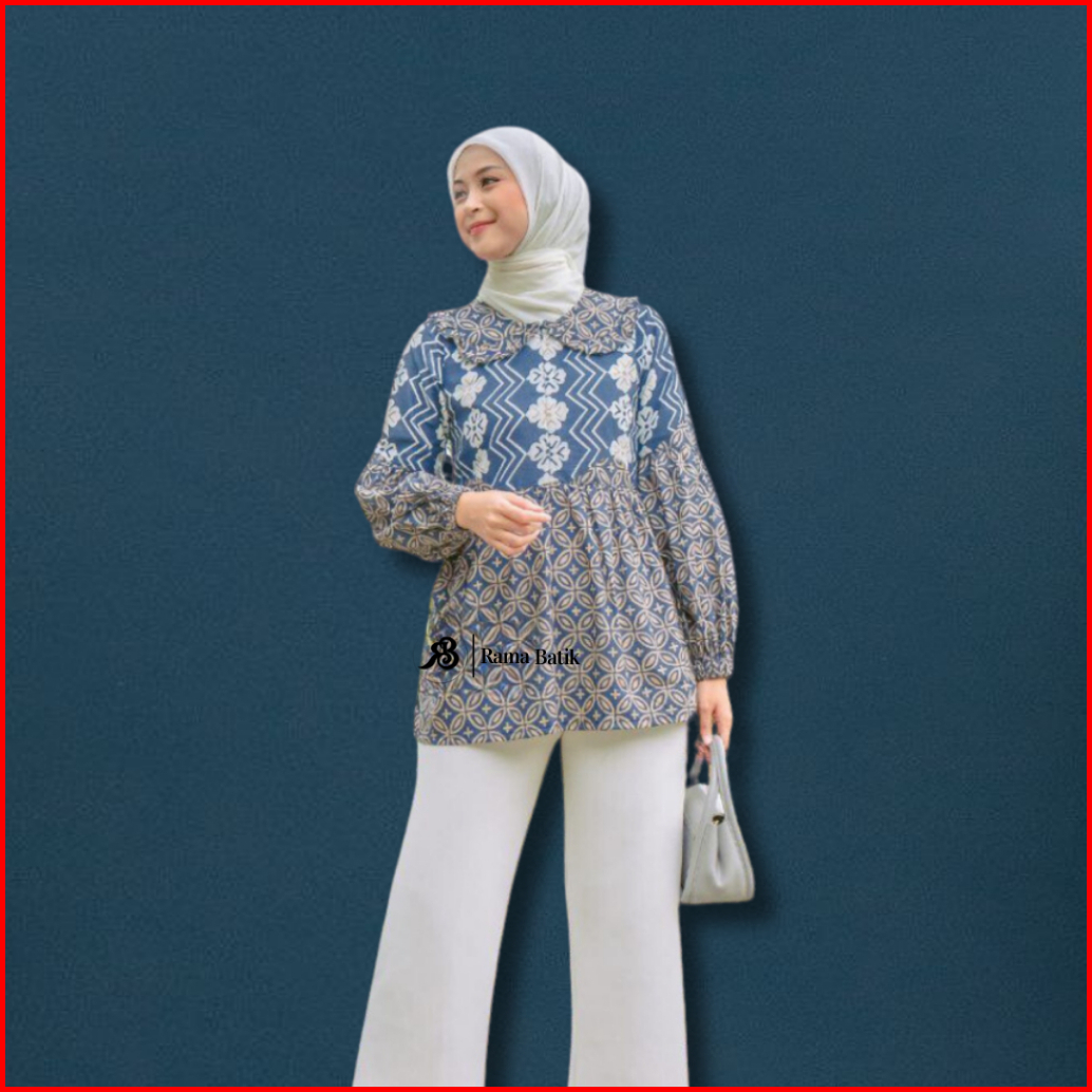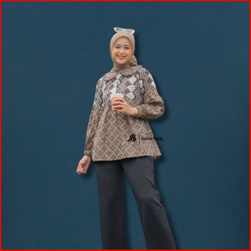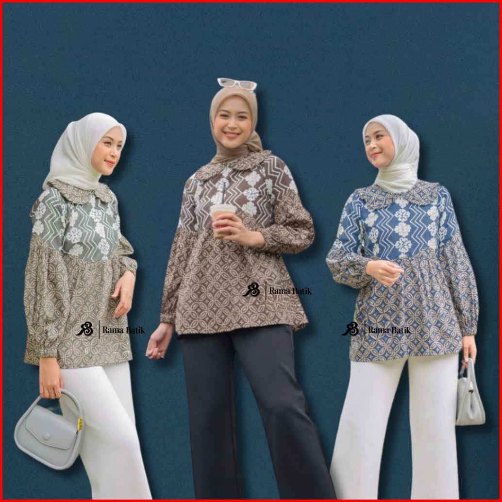 Blouse Batik Atasan Wanita Baju Batik Modern Busui Kembang Kawung Seragam Kerja Katun