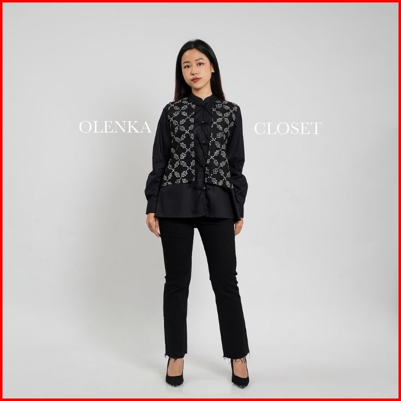 Atasan Batik 174 Hitam Baju Blus Blouse Kerja Wanita Modern