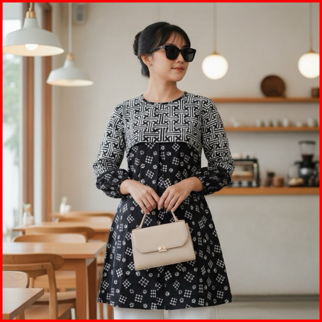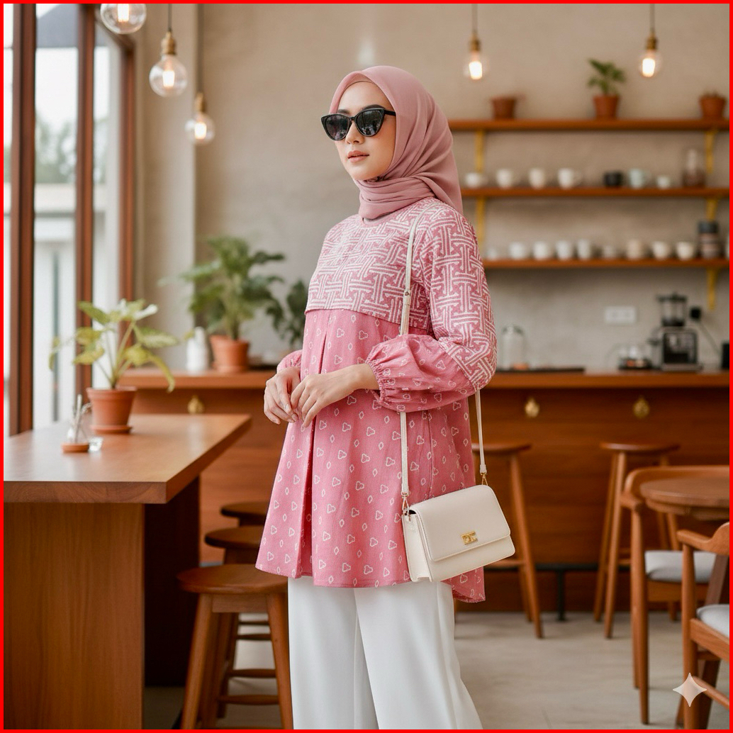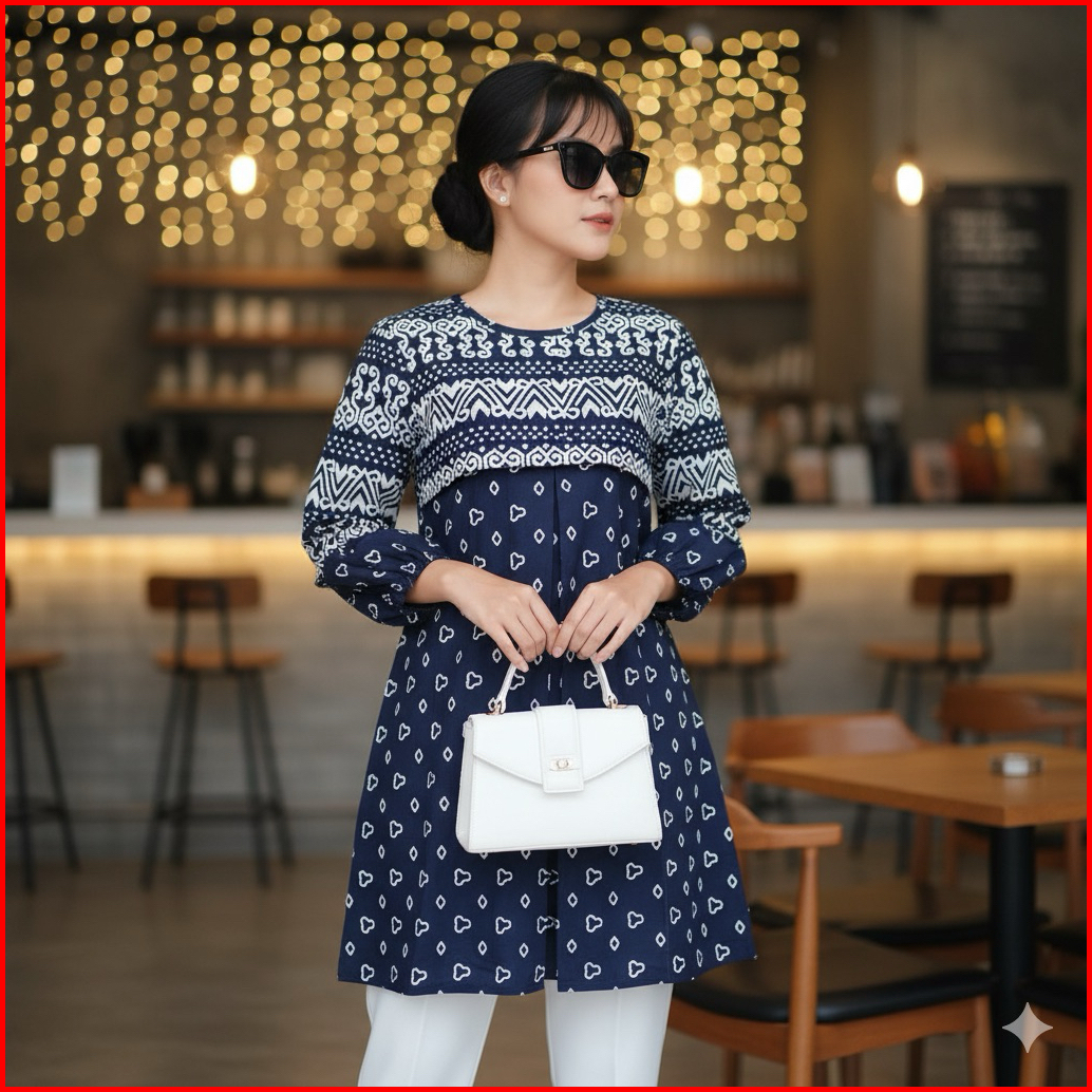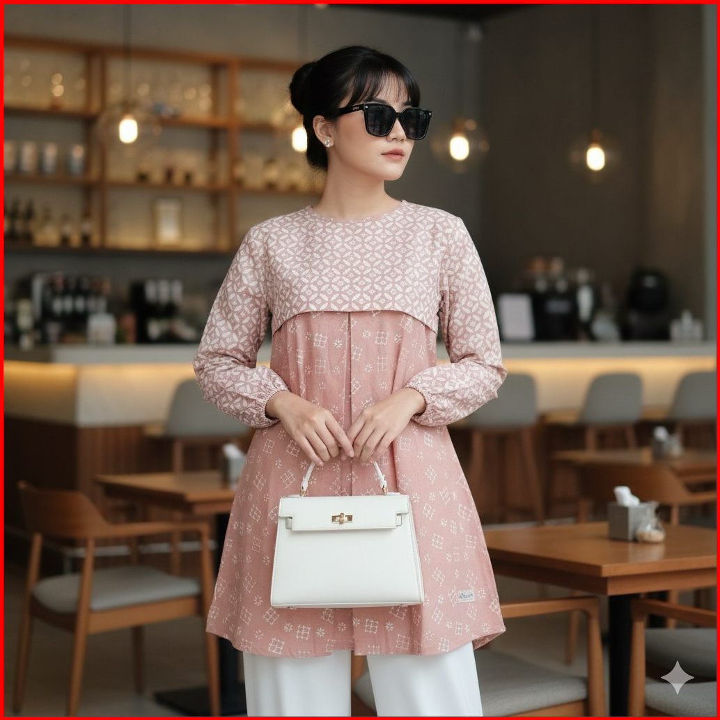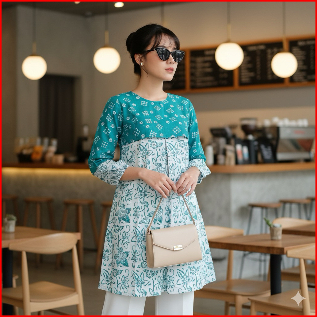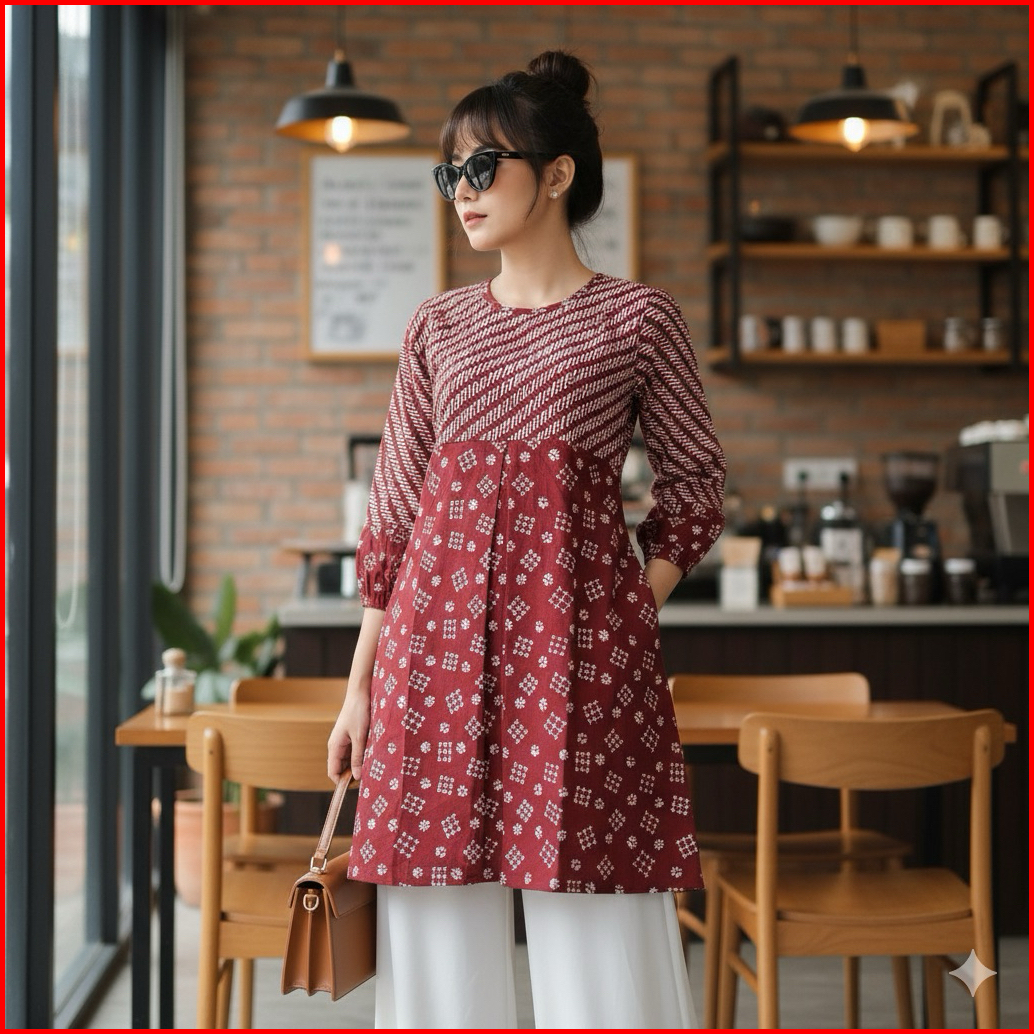 Shanaya Batik Tunik Mauza Cap Garutan Baju Batik Wanita Batik Kerja Formal Cantik Elegan