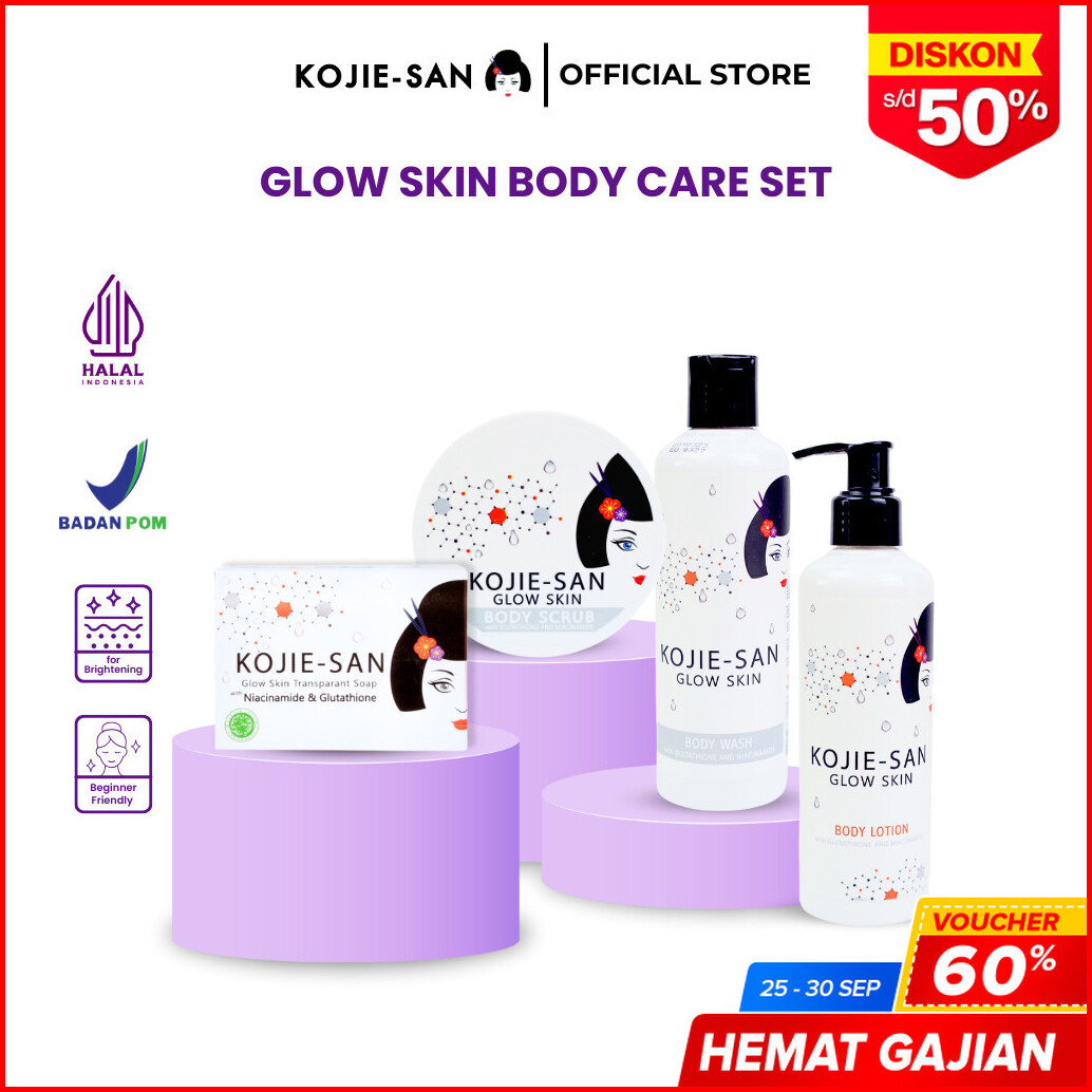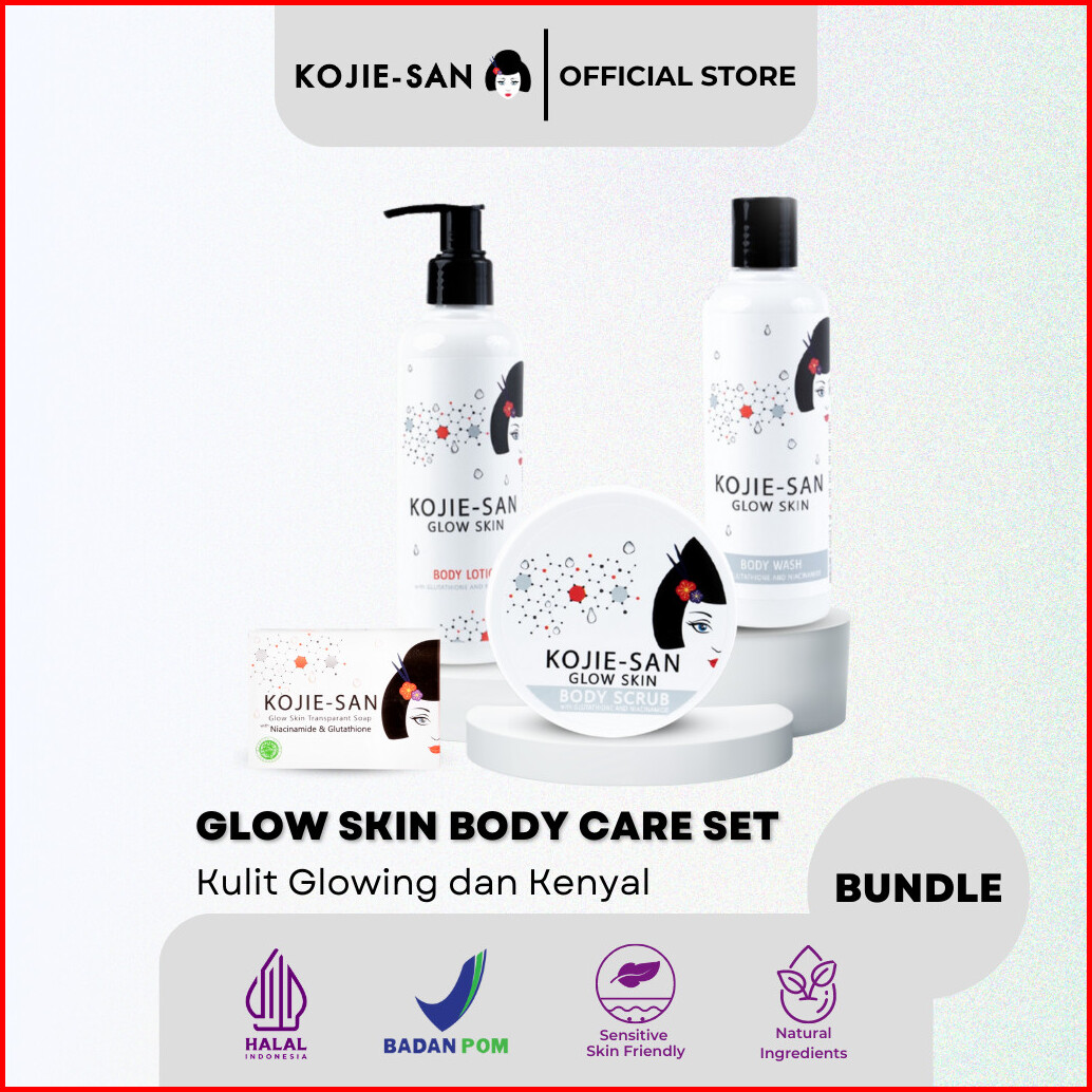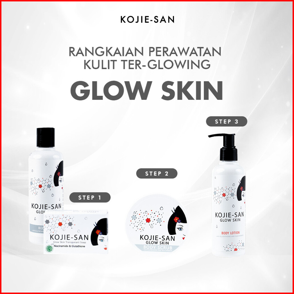 Kojie-san Paket Glow Skin Transparant Complete Body Lotion Body Wash Scrub 250gr Soap 65gr