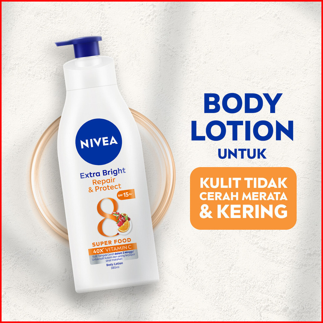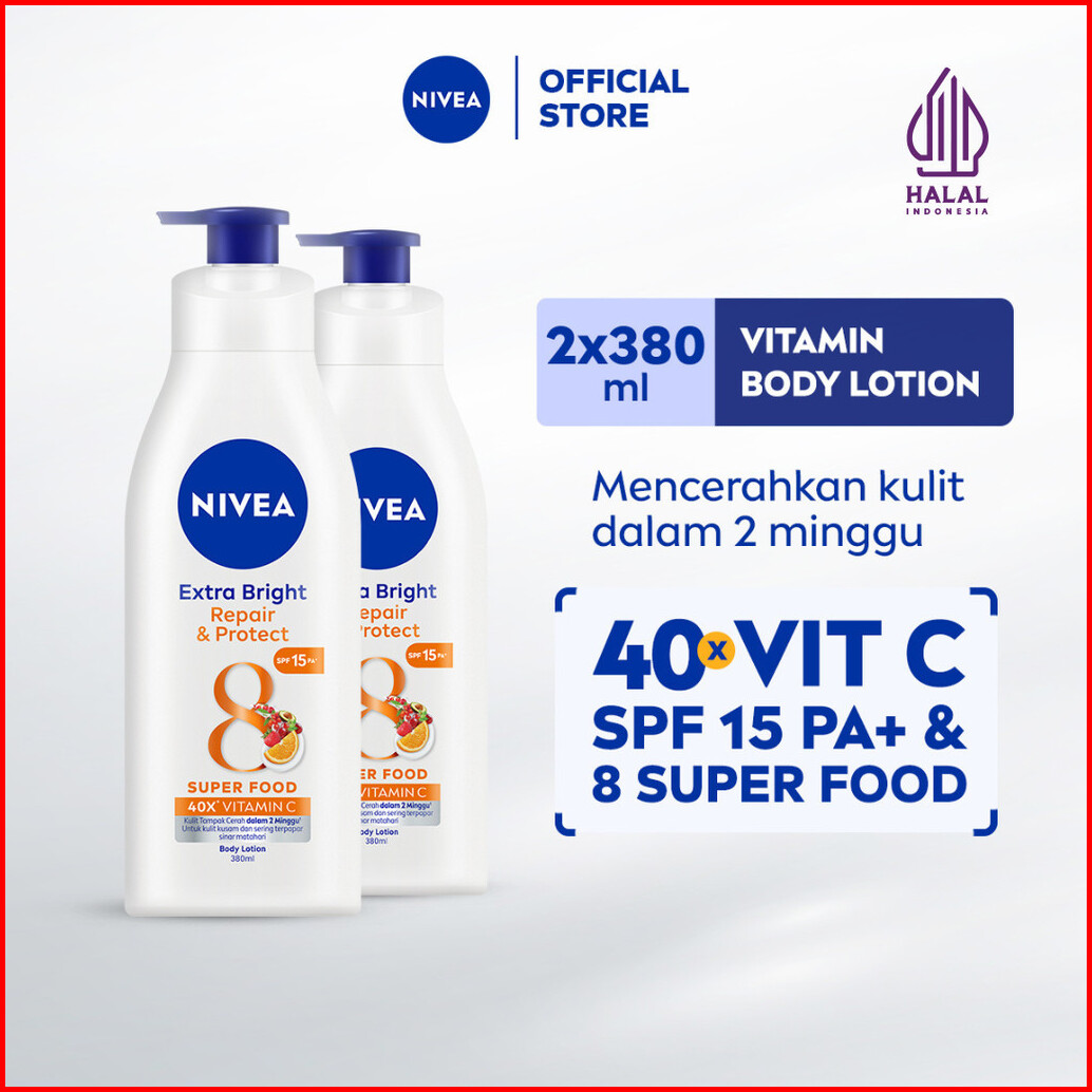 Paket Hemat Isi 2 Nivea Body Lotion Extra Bright Repair Protect Spf15 380ml - Hand Body Lotion Moisturizer Mencerahkan K