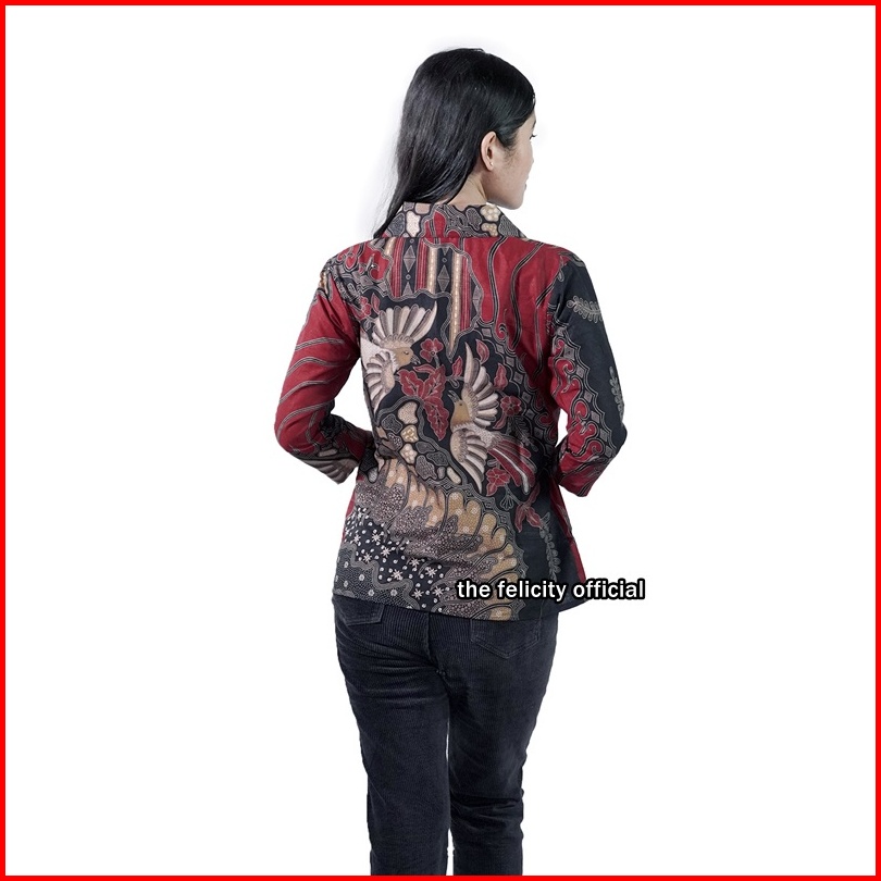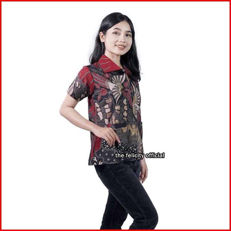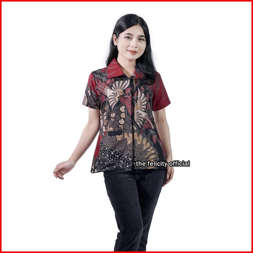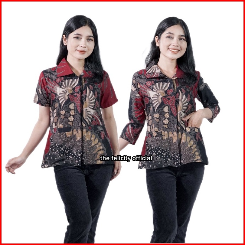 Felicitybatik - Atasan Blouse Batik Kemeja Wanita Berkerah Lengan Pendek Dan 7 8 Cinta