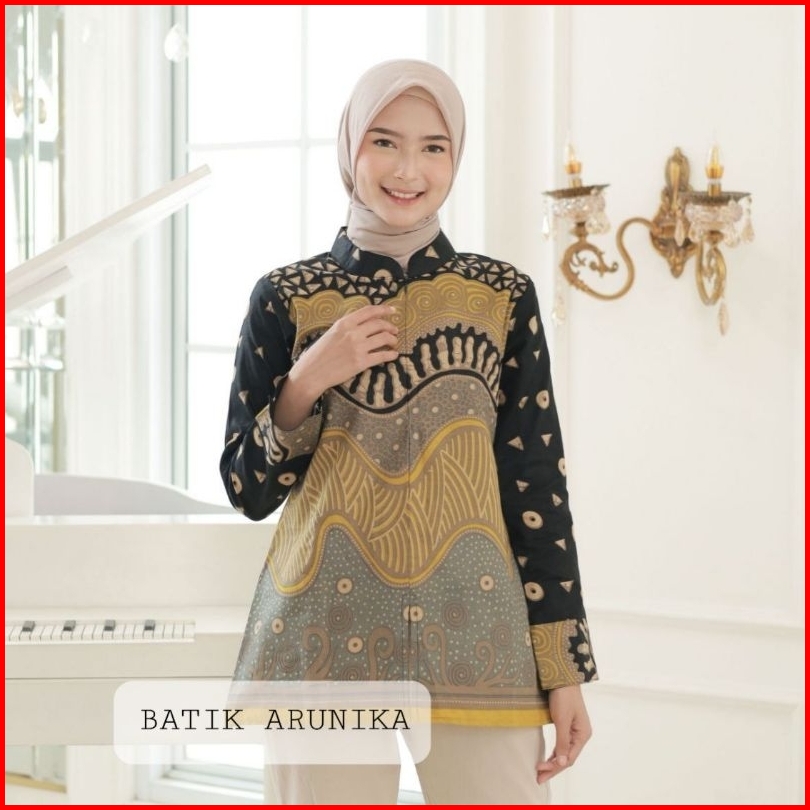 Atasan Batik Wanita Resleting Depan Lengan Panjang Batik Kerja Wanita Modern