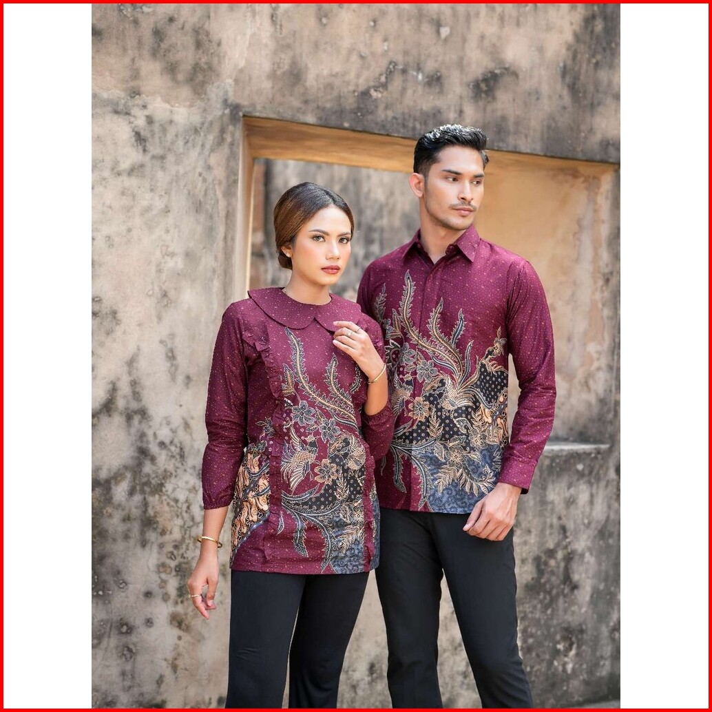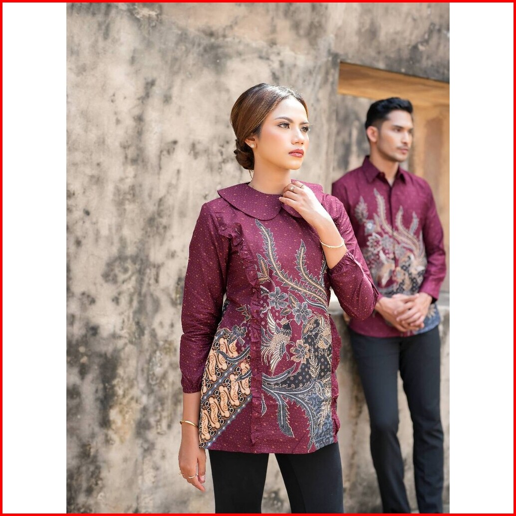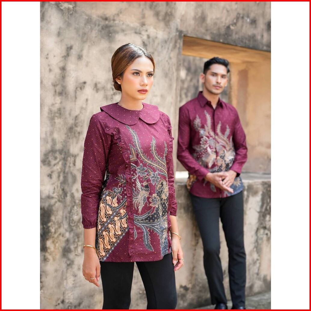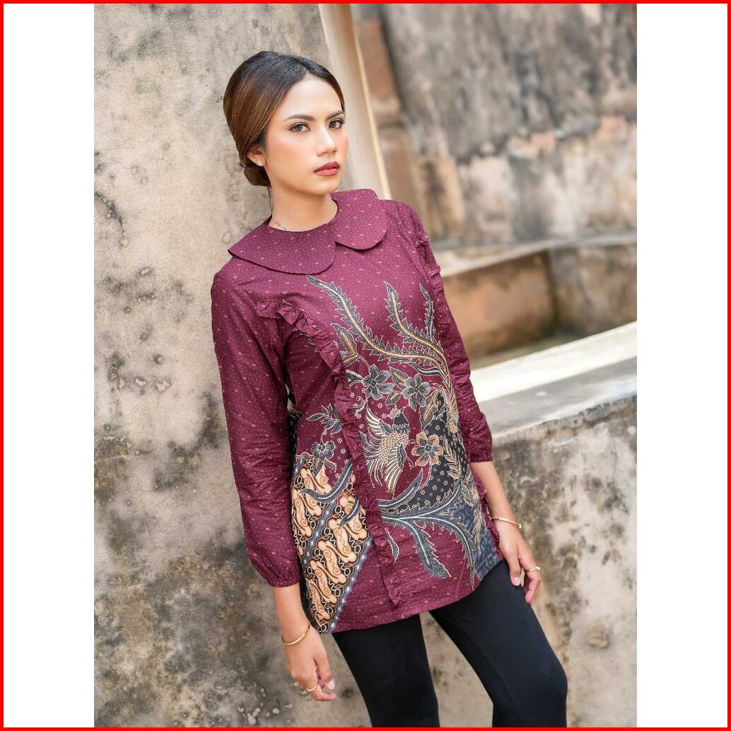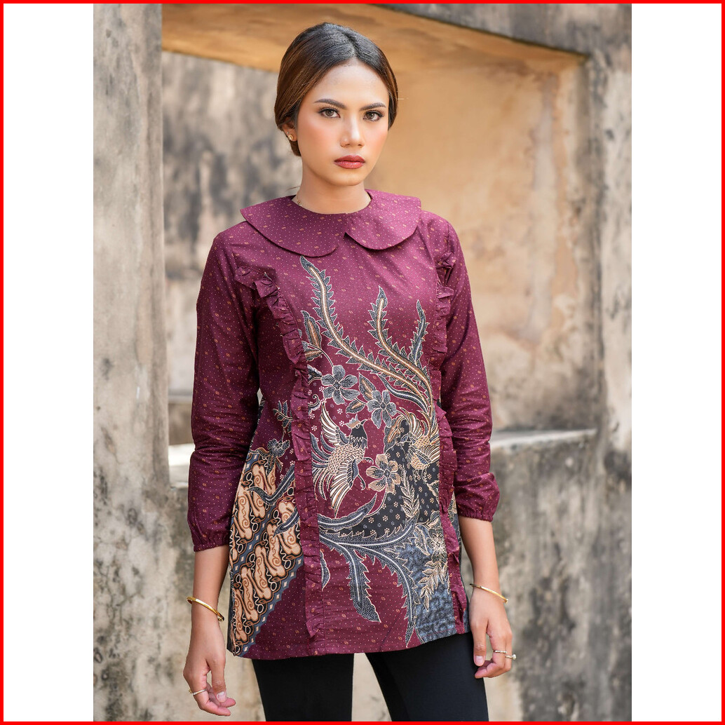 Batik Adyatma Wanita Seera Maroon Blouse Katun